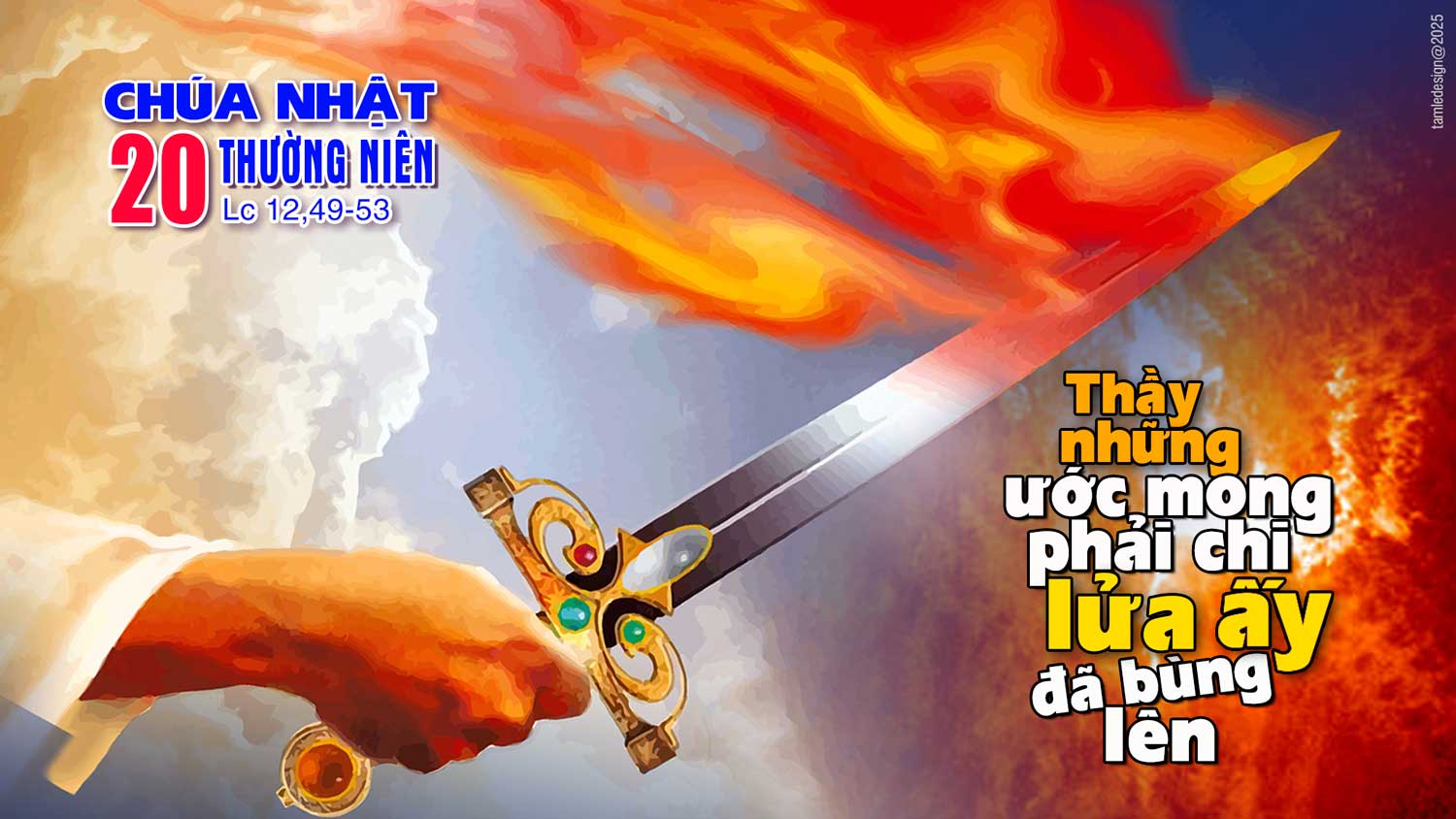 “Thầy đã đến ném lửa vào mặt đất, và Thầy những ước mong phải chi lửa ấy đã bùng cháy lên” Lửa là biểu tưởng cho sức mạnh của Thiên Chúa. Lửa có khả năng soi sáng, sưởi ấm, nung nấu và thiêu hủy.