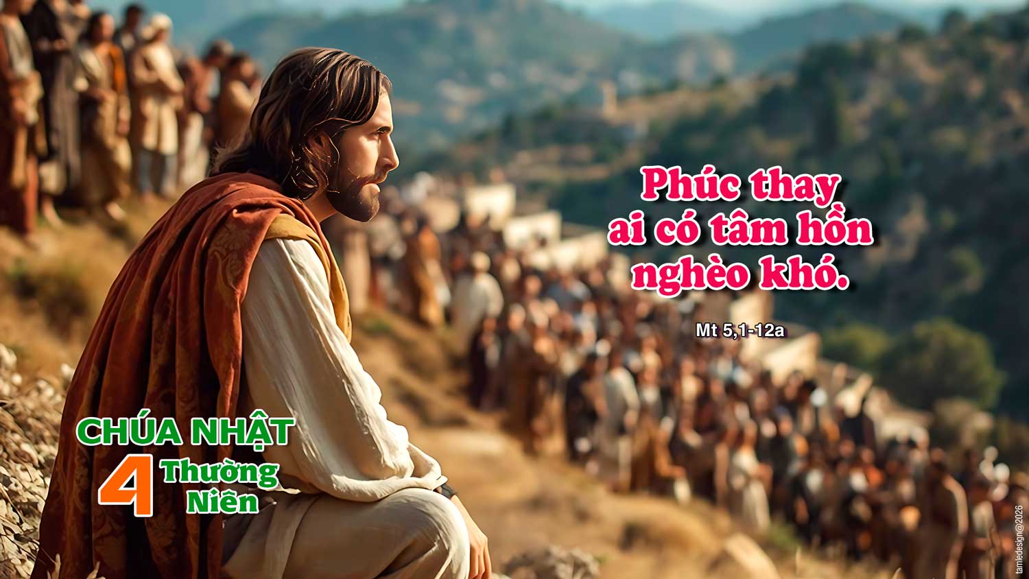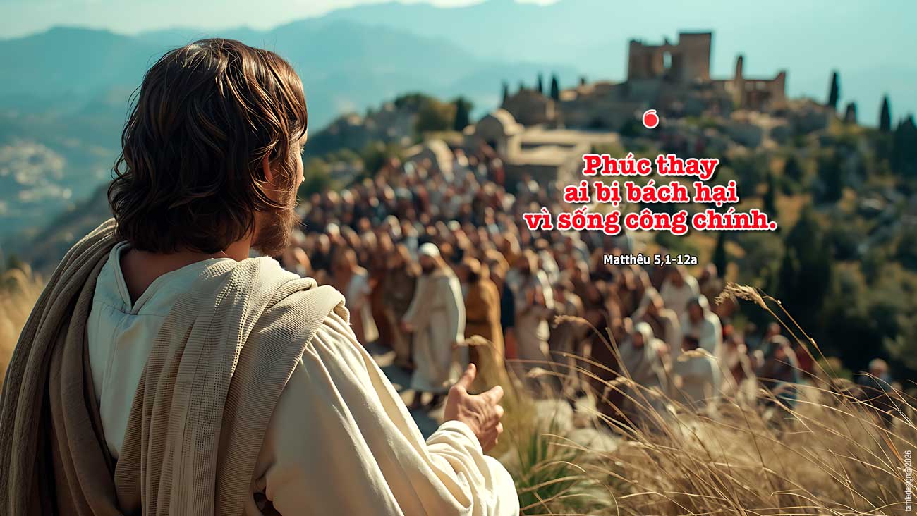 Khi ấy, thấy đám đông, Đức Giê-su lên núi. Người ngồi xuống, các môn đệ đến gần bên. Người mở miệng dạy họ rằng: Phúc thay ai có tâm hồn nghèo khó, vì Nước Trời là của họ. Phúc thay ai hiền lành, vì họ sẽ được Đất Hứa làm gia nghiệp. Phúc thay ai sầu khổ, vì họ sẽ được Thiên Chúa ủi an. Phúc thay ai khát khao nên người công chính, vì họ sẽ được Thiên Chúa cho thoả lòng. Phúc thay ai xót thương người, vì họ sẽ được Thiên Chúa xót thương. Phúc thay ai có tâm hồn trong sạch, vì họ sẽ được nhìn thấy Thiên Chúa. Phúc thay ai xây dựng hoà bình, vì họ sẽ được gọi là con Thiên Chúa. Phúc thay ai bị bách hại vì sống công chính, vì Nước Trời là của họ. Phúc thay anh em khi vì Thầy mà bị người ta sỉ vả, bách hại và vu khống đủ điều xấu xa. Anh em hãy vui mừng hớn hở, vì phần thưởng dành cho anh em ở trên trời thật lớn lao. Ðó là lời Chúa.