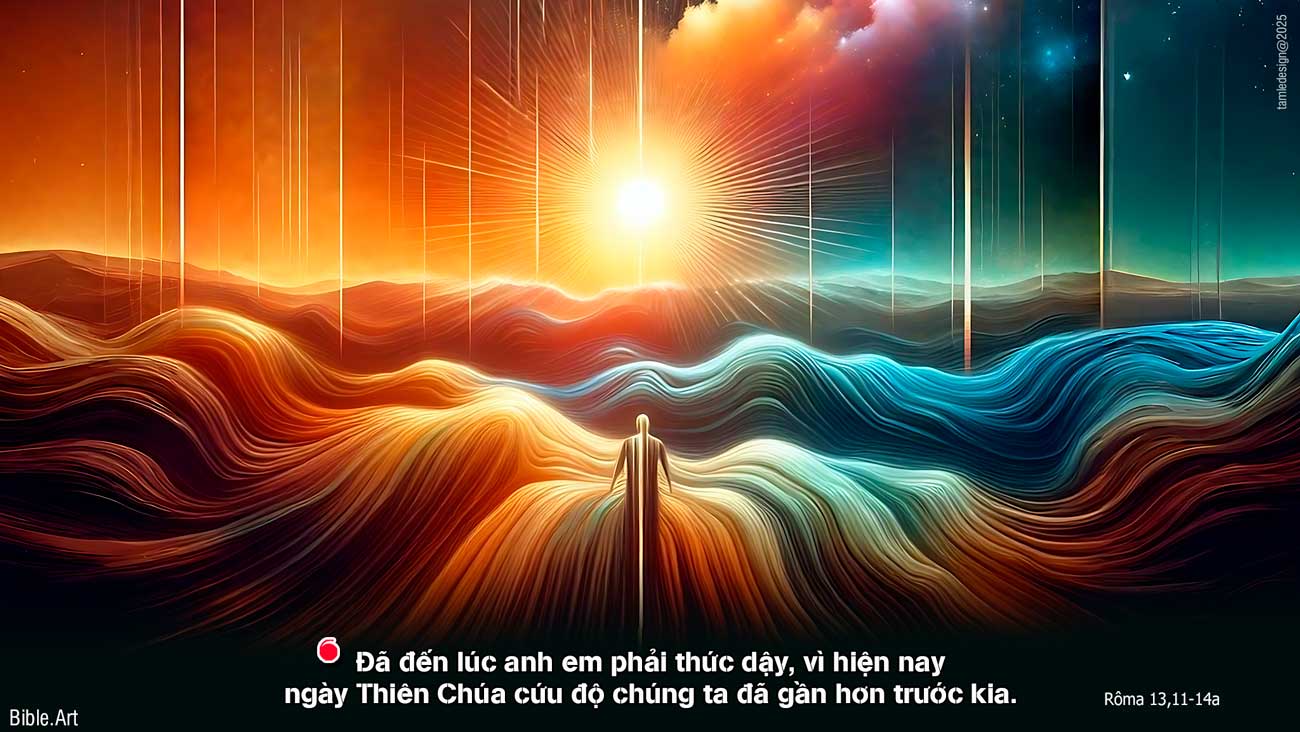 Thưa anh em, anh em biết chúng ta đang sống trong thời nào. Đã đến lúc anh em phải thức dậy, vì hiện nay ngày Thiên Chúa cứu độ chúng ta đã gần hơn trước kia, khi chúng ta mới tin đạo. Đêm sắp tàn, ngày gần đến. Vậy chúng ta hãy loại bỏ những việc làm đen tối, và cầm lấy vũ khí của sự sáng y để chiến đấu. Chúng ta hãy ăn ở cho đứng đắn như người đang sống giữa ban ngày: không chè chén say sưa, không chơi bời dâm đãng, cũng không cãi cọ ghen tuông. Nhưng anh em hãy mặc lấy Chúa Giê-su Ki-tô, và đừng chiều theo tính xác thịt mà thoả mãn các dục vọng. Đó là lời Chúa.