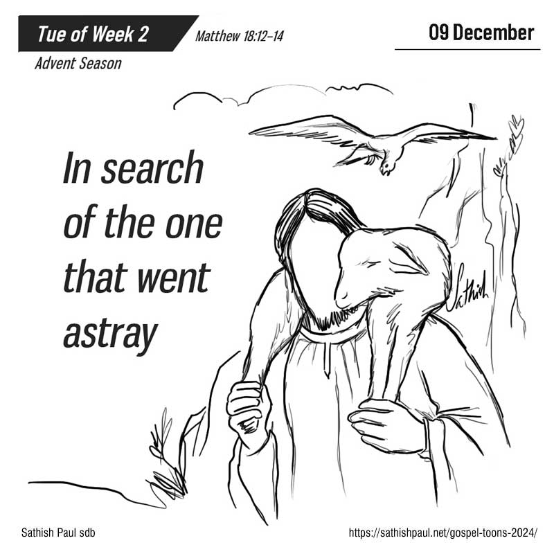 Khi ấy, Đức Giê-su nói với các môn đệ rằng: “Anh em nghĩ sao? Ai có một trăm con chiên mà có một con đi lạc, lại không để chín mươi chín con kia trên núi mà đi tìm con chiên lạc sao? Và nếu may mà tìm được, thì Thầy bảo thật anh em, người ấy vui mừng vì con chiên đó, hơn là vì chín mươi chín con không bị lạc. Cũng vậy, Cha của anh em, Đấng ngự trên trời, không muốn cho một ai trong những kẻ bé mọn này phải hư mất.” Đó là lời Chúa.