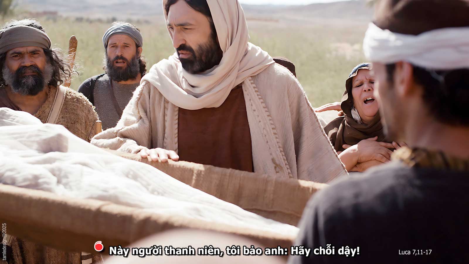 Khi ấy, Đức Giê-su đi đến thành kia gọi là Na-in, có các môn đệ và một đám rất đông cùng đi với Người. Khi Đức Giê-su đến gần cửa thành, thì đang lúc người ta khiêng một người chết đi chôn, người này là con trai duy nhất, và mẹ anh ta lại là một bà goá. Có một đám đông trong thành cùng đi với bà. Trông thấy bà, Chúa chạnh lòng thương và nói: “Bà đừng khóc nữa! “Rồi Người lại gần, sờ vào quan tài. Các người khiêng dừng lại. Đức Giê-su nói: “Này người thanh niên, tôi bảo anh: hãy trỗi dậy! ” Người chết liền ngồi lên và bắt đầu nói. Đức Giê-su trao anh ta cho bà mẹ. Mọi người đều kinh sợ và tôn vinh Thiên Chúa rằng: “Một vị ngôn sứ vĩ đại đã xuất hiện giữa chúng ta, và Thiên Chúa đã viếng thăm dân Người”. Lời này về Đức Giê-su được loan truyền khắp cả miền Giu-đê và vùng lân cận. Đó là lời Chúa.
