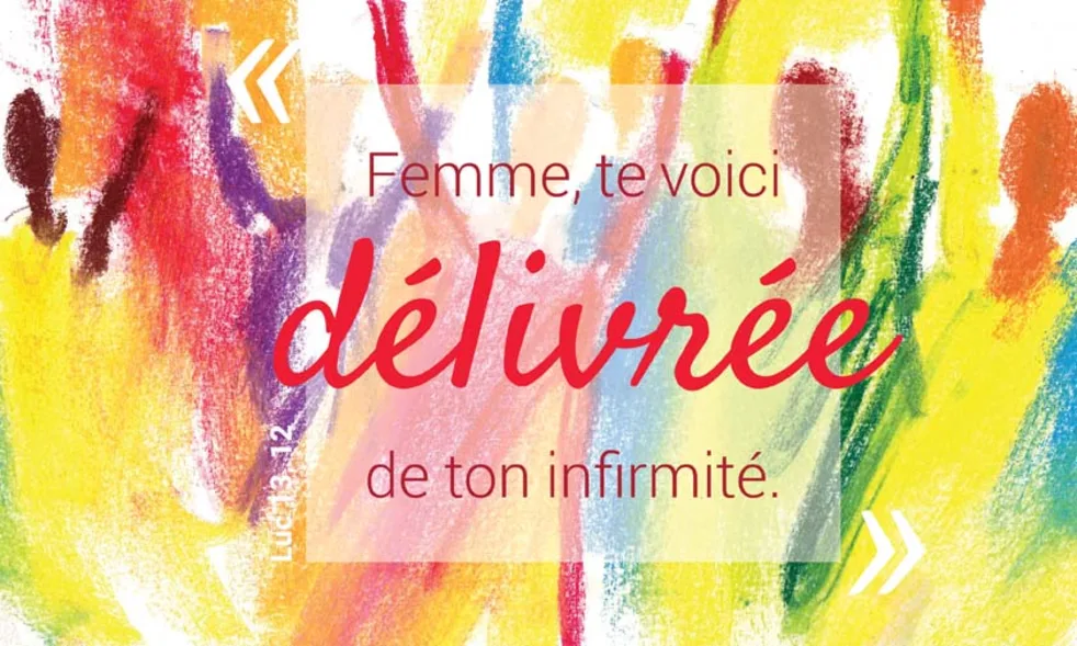 Voici qu’il y avait là une femme, possédée par un esprit qui la rendait infirme depuis dix-huit ans ; elle était toute courbée et absolument incapable de se redresser. Quand Jésus la vit, il l’interpella et lui dit : « Femme, te voici délivrée de ton infirmité. » Et il lui imposa les mains. À l’instant même elle redevint droite et rendait gloire à Dieu. (Lc 13, 10-17)