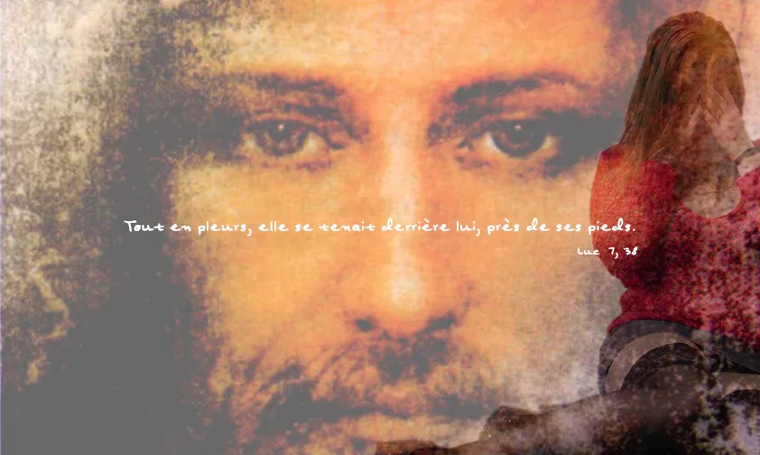 Jésus entra chez lui et prit place à table. Survint une femme de la ville, une pécheresse. Ayant appris que Jésus était attablé dans la maison du pharisien, elle avait apporté un flacon d’albâtre contenant un parfum. Tout en pleurs, elle se tenait derrière lui, près de ses pieds, et elle se mit à mouiller de ses larmes les pieds de Jésus. Elle les essuyait avec ses cheveux, les couvrait de baisers et répandait sur eux le parfum. (Lc 7, 36-50)