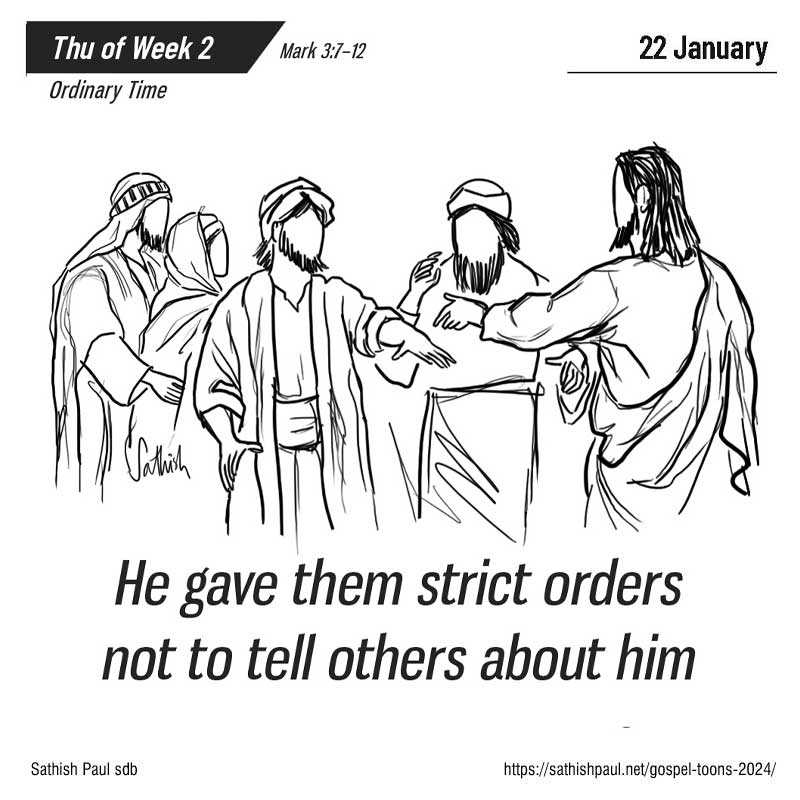 Khi ấy, Đức Giê-su cùng với các môn đệ lui về phía Biển Hồ. Từ miền Ga-li-lê, người ta lũ lượt đi theo Người. Và từ miền Giu-đê, từ Giê-ru-sa-lem, từ xứ I-đu-mê, từ vùng bên kia sông Gio-đan và vùng phụ cận hai thành Tia và Xi-đôn, người ta lũ lượt đến với Người, vì nghe biết những gì Người đã làm. Người đã bảo các môn đệ dành sẵn cho Người một chiếc thuyền nhỏ, để khỏi bị đám đông chen lấn. Quả thế, Người đã chữa lành nhiều bệnh nhân, khiến tất cả những ai có bệnh cũng đổ xô đến để sờ vào Người. Còn các thần ô uế, hễ thấy Đức Giê-su, thì phủ phục trước mặt Người và kêu lên: “Ông là Con Thiên Chúa!” Nhưng Người cấm ngặt chúng không được tiết lộ Người là ai. Đó là lời Chúa.