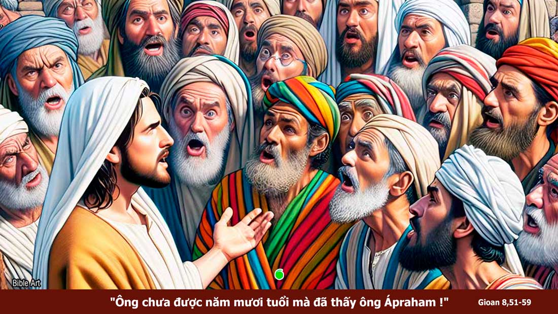 Khi ấy, Đức Giê-su nói với những người Do-thái: “Thật, tôi bảo thật các ông: ai tuân giữ lời tôi, thì sẽ không bao giờ phải chết.” Người Do-thái liền nói: “Bây giờ, chúng tôi biết chắc là ông bị quỷ ám. Ông Áp-ra-ham đã chết, các ngôn sứ cũng vậy; thế mà ông lại nói: “Ai tuân giữ lời tôi, thì sẽ không bao giờ phải chết.” Chẳng lẽ ông lại cao trọng hơn cha chúng tôi là ông Áp-ra-ham sao? Người đã chết, các ngôn sứ cũng đã chết. Ông tự coi mình là ai?” Đức Giê-su đáp: “Nếu tôi tôn vinh chính mình, vinh quang của tôi chẳng là gì cả. Đấng tôn vinh tôi chính là Cha tôi, Đấng mà các ông gọi là Thiên Chúa của các ông. Các ông không biết Người; còn tôi, tôi biết Người. Nếu tôi nói là tôi không biết Người, thì tôi cũng là kẻ nói dối như các ông. Nhưng tôi biết Người và giữ lời Người. Ông Áp-ra-ham là cha các ông đã hớn hở vui mừng vì hy vọng được thấy ngày của tôi. Ông đã thấy và đã mừng rỡ.” Người Do-thái nói: “Ông chưa được năm mươi tuổi mà đã thấy ông Áp-ra-ham!” Đức Giê-su đáp: “Thật, tôi bảo thật các ông: trước khi có ông Áp-ra-ham, thì tôi, Tôi Hằng Hữu!” Họ liền lượm đá để ném Người. Nhưng Đức Giê-su lánh đi và ra khỏi Đền Thờ. Đó là lời Chúa.