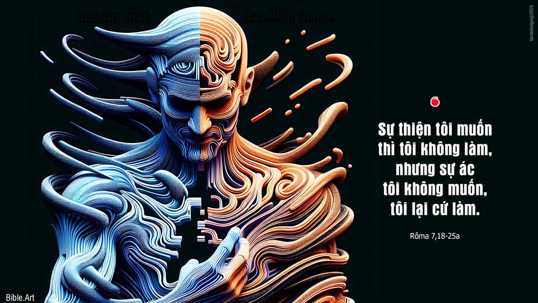 Thưa anh em, tôi biết rằng sự thiện không ở trong tôi, nghĩa là trong xác thịt tôi. Thật vậy, muốn sự thiện thì tôi có thể muốn, nhưng làm thì không. Sự thiện tôi muốn thì tôi không làm, nhưng sự ác tôi không muốn, tôi lại cứ làm. Nếu tôi cứ làm điều tôi không muốn, thì không còn phải là chính tôi làm điều đó, nhưng là tội vẫn ở trong tôi. Bởi đó tôi khám phá ra luật này: khi tôi muốn làm sự thiện thì lại thấy sự ác xuất hiện ngay. Theo con người nội tâm, tôi vui thích vì luật của Thiên Chúa; nhưng trong các chi thể của tôi, tôi lại thấy một luật khác: luật này chiến đấu chống lại luật của lý trí và giam hãm tôi trong luật của tội là luật vẫn nằm sẵn trong các chi thể tôi. Tôi thật là một người khốn nạn! Ai sẽ giải thoát tôi khỏi thân xác phải chết này? Tạ ơn Thiên Chúa, nhờ Đức Giê-su Ki-tô, Chúa chúng ta! Đó là lời Chúa.