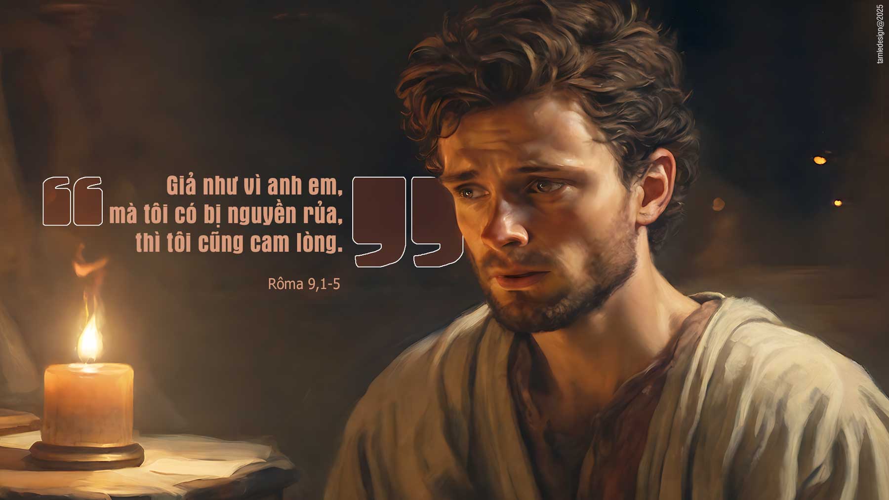Thưa anh em, có Đức Ki-tô chứng giám, tôi xin nói sự thật, tôi không nói dối và lương tâm tôi, được Thánh Thần hướng dẫn, cũng làm chứng cho tôi rằng: lòng tôi rất đỗi ưu phiền và đau khổ mãi không ngơi. Quả vậy, giả như vì anh em đồng bào của tôi theo huyết thống, mà tôi có bị nguyền rủa và xa lìa Đức Ki-tô, thì tôi cũng cam lòng. Họ là người Ít-ra-en, họ đã được Thiên Chúa nhận làm con, được Người cho thấy vinh quang, ban tặng các giao ước, lề luật, một nền phụng tự và các lời hứa; họ là con cháu các tổ phụ; và sau hết, chính Đức Ki-tô, xét theo huyết thống, cũng cùng một nòi giống với họ. Người là Thiên Chúa, Đấng vượt trên mọi sự. Chúc tụng Người đến muôn thuở muôn đời. A-men. Đó là lời Chúa.