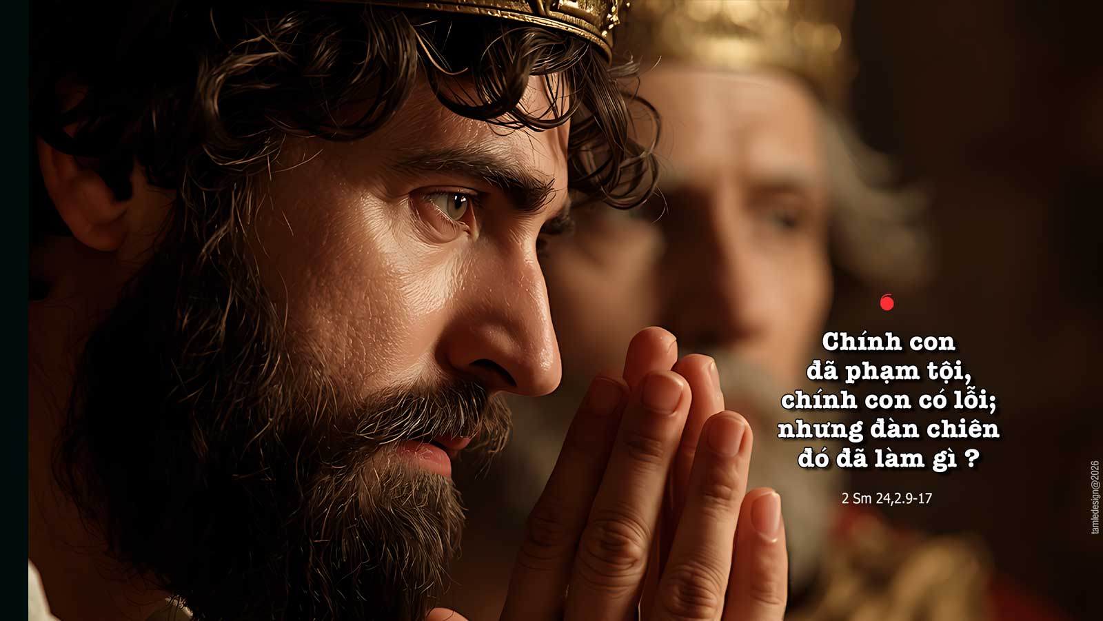 Một hôm, vua Đa-vít bảo ông Giô-áp tướng chỉ huy quân lực, đang ở với vua: “Hãy rảo khắp các chi tộc Ít-ra-en, từ Đan tới Bơ-e Se-va, và điều tra nhân khẩu để ta biết dân số.” … Ông Giô-áp nộp cho vua con số của cuộc điều tra dân số : Ít-ra-en có tám trăm ngàn chiến binh biết tuốt gươm, và Giu-đa có năm trăm ngàn. Vua Đa-vít áy náy trong lòng sau khi đã kiểm tra dân số như vậy. Vua Đa-vít thưa cùng Đức Chúa : « Con đã phạm tội nặng khi làm như thế. Giờ đây, lạy Đức Chúa, xin bỏ qua lỗi lầm của tôi tớ Ngài, vì con đã hành động rất ngu xuẩn. » Sáng hôm sau, khi vua Đa-vít dậy, đã có lời Đức Chúa phán với ngôn sứ Gát, thầy chiêm của vua Đa-vít, rằng : « Hãy đi nói với Đa-vít : Đức Chúa phán thế này : ‘Ta đưa ra cho ngươi ba điều. Ngươi hãy chọn lấy một trong ba, và Ta sẽ thực hiện cho ngươi.’ » Vậy ông Gát đến gặp vua Đa-vít, báo cho vua và nói : « Ngài muốn điều gì xảy ra : hoặc bảy năm đói trong toàn nước ngài, hoặc ba tháng chạy trốn trước mặt kẻ thù đuổi theo ngài, hoặc ba ngày ôn dịch? Bây giờ xin ngài suy nghĩ xem tôi phải trả lời thế nào cho Đấng đã sai tôi. » Vua Đa-vít nói với ông Gát : « Tôi lâm vào cảnh rất ngặt nghèo. Thà chúng ta sa vào tay Đức Chúa còn hơn, vì lòng thương của Người bao la, nhưng ước chi tôi đừng sa vào tay người phàm! » Đức Chúa giáng ôn dịch xuống Ít-ra-en từ sáng hôm đó cho đến lúc đã định, và từ Đan cho tới Bơ-e Se-va, có bảy mươi ngàn người trong dân đã chết. Thiên sứ đưa tay về phía Giê-ru-sa-lem để tàn phá thành, nhưng Đức Chúa hối tiếc vì tai hoạ đó, và Người bảo thiên sứ có nhiệm vụ tiêu diệt dân : « Đủ rồi! Bây giờ rút tay lại. » Thiên sứ của Đức Chúa đang ở gần sân lúa của ông Arauna, người Giơvút. Vua Đa-vít thưa với Đức Chúa, khi thấy thiên sứ có nhiệm vụ đánh phạt dân, ông nói : « Ngài coi, chính con đã phạm tội, chính con có lỗi; nhưng đàn chiên đó đã làm gì? Xin tay Ngài cứ đè trên con và nhà cha con! » Đó là lời Chúa.