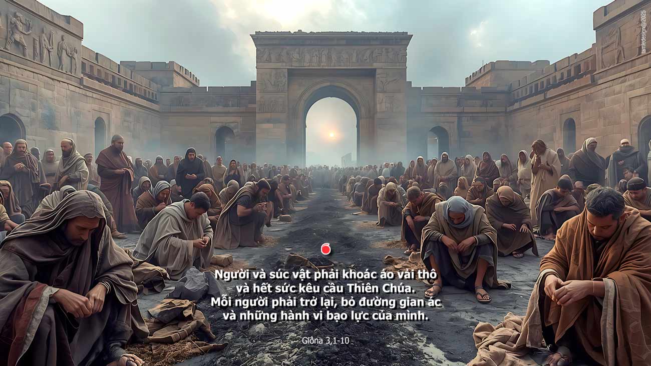 Có lời Đức Chúa phán với ông Giô-na lần thứ hai rằng: “Hãy đứng dậy, đi đến Ni-ni-vê, thành phố lớn, và hô cho dân thành biết lời tuyên cáo Ta sẽ truyền cho ngươi.” Ông Giô-na đứng dậy và đi Ni-ni-vê, như lời Đức Chúa phán. Ni-ni-vê là một thành phố cực kỳ rộng lớn, đi ngang qua phải mất ba ngày đường. Ông Giô-na bắt đầu vào thành, đi một ngày đường và công bố: “Còn bốn mươi ngày nữa, Ni-ni-vê sẽ bị phá đổ.” Dân Ni-ni-vê tin vào Thiên Chúa, họ công bố lệnh ăn chay và mặc áo vải thô, từ người lớn đến trẻ nhỏ. Tin báo đến cho vua Ni-ni-vê; vua rời khỏi ngai, cởi áo choàng, khoác áo vải thô, và ngồi trên tro. Vua cho rao tại Ni-ni-vê: “Do sắc chỉ của Đức vua và các quan đại thần, người và súc vật, bò bê và chiên dê không được nếm bất cứ thứ gì, không được ăn cỏ, không được uống nước. Người và súc vật phải khoác áo vải thô và hết sức kêu cầu Thiên Chúa. Mỗi người phải trở lại, bỏ đường gian ác và những hành vi bạo lực của mình. Biết đâu Thiên Chúa chẳng nghĩ lại, chẳng bỏ ý định giáng phạt, và nguôi cơn thịnh nộ, khiến chúng ta khỏi phải chết.” Thiên Chúa thấy việc họ làm, thấy họ bỏ đường gian ác mà trở lại, Người hối tiếc về tai hoạ Người đã tuyên bố sẽ giáng trên họ, và đã không giáng xuống nữa. Đó là lời Chúa.
