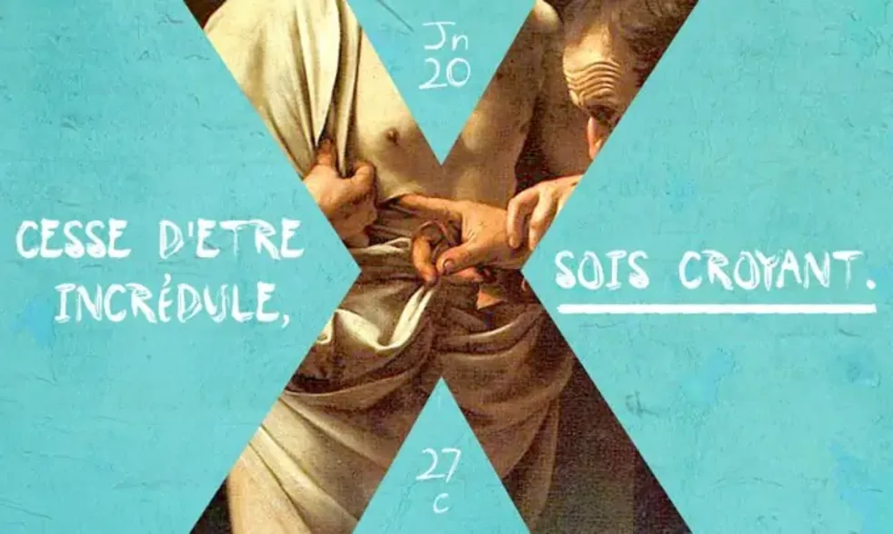 Jésus vient, alors que les portes étaient verrouillées, et il était là au milieu d’eux. Il dit: «La paix soit avec vous!» Puis il dit à Thomas: «Avance ton doigt ici, et vois mes mains ; avance ta main, et mets-la dans mon côté: Cesse d’être incrédule, sois croyant.» Alors Thomas lui dit: «Mon Seigneur et mon Dieu!» Jésus lui dit: «Parce que tu m’as vu, tu crois. Heureux ceux qui croient sans avoir vu.» (Jn 20,19-31)