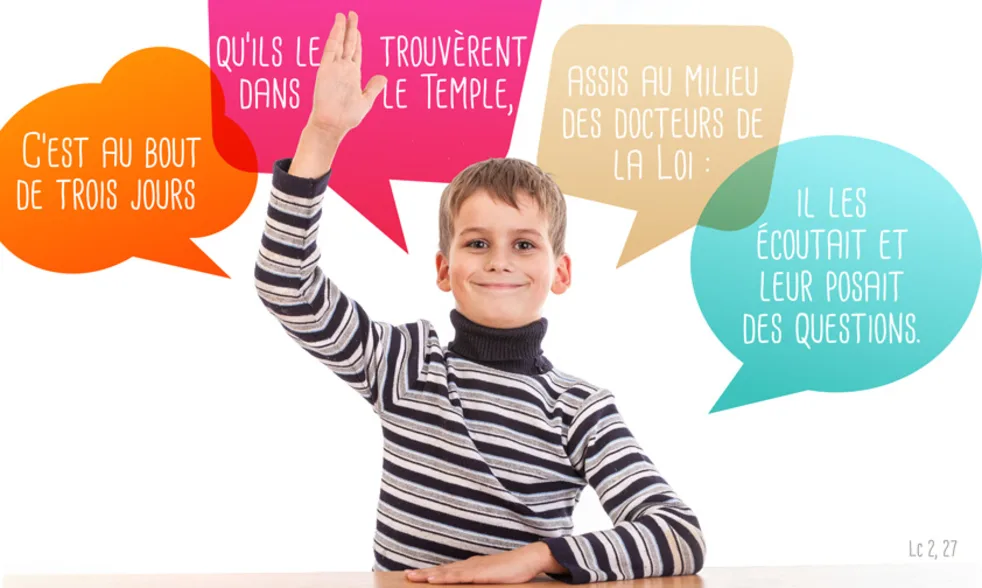 C’est au bout de trois jours qu’ils le trouvèrent dans le Temple, assis au milieu des docteurs de la Loi: il les écoutait et leur posait des questions, et tous ceux qui l’entendaient s’extasiaient sur son intelligence et sur ses réponses. (Lc 2, 41-52)