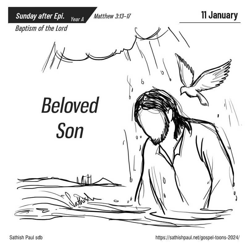 Bấy giờ, Đức Giê-su từ miền Ga-li-lê đến sông Gio-đan, gặp ông Gio-an để xin ông làm phép rửa cho mình. Nhưng ông một mực can Người và nói: “Chính tôi mới cần được Ngài làm phép rửa, thế mà Ngài lại đến với tôi” Nhưng Đức Giê-su trả lời: “Bây giờ cứ thế đã. Vì chúng ta nên làm như vậy để giữ trọn đức công chính.” Bấy giờ ông Gio-an mới chiều theo ý Người. Khi Đức Giê-su chịu phép rửa xong, vừa ở dưới nước lên, thì các tầng trời mở ra. Người thấy Thần Khí Thiên Chúa đáp xuống như chim bồ câu và ngự trên Người. Và có tiếng từ trời phán: “Đây là Con yêu dấu của Ta, Ta hài lòng về Người.” Đó là lời Chúa.