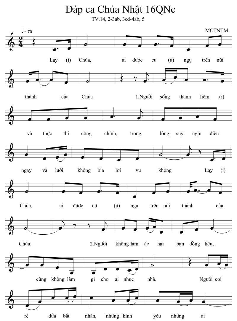 Chúa Nhật XVI Thường Niên | Thánh Vịnh Đáp Ca