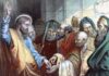 In the first reading from the Acts of the Apostles, the community of believers is described as witnessing to the resurrection of Jesus and living for one another. In John’s Gospel, Jesus teahes Nicodemus that his testimony comes from heaven, and that through him, all believers will have eternal life.