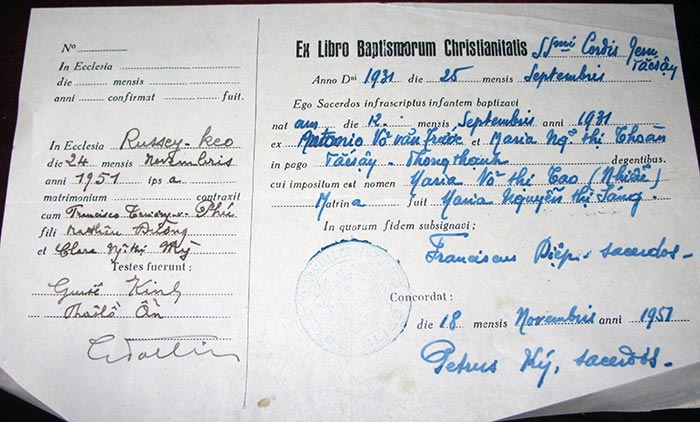 Nghi thức rửa tội bên Việt Nam vẫn còn câu hỏi: Ông bà muốn đặt tên thánh cho em bé là gì? Đây chỉ là truyền thống Công Giáo của người Việt Nam dưới thời các nhà truyền giáo Âu Châu. Nếu giữ được, rất tốt vì ít là có một vị thánh cho mình bắt chước và cầu bàu cho mình. Nhưng nếu bỏ đi, dùng tên thật của mình cũng vẫn tốt và thực tế hơn. Ngày nay người ta cũng không cần có tên thánh Thêm Sức. Một tên là đủ hơn là có tên thánh mà không biết vị thánh đó như thế nào. Nếu không biết vị thánh bổn mạng như thế nào thì làm sao để bắt chước? Không hợp lý chút nào khi Giám Mục xức dầu thánh trên trán ứng viên Thêm Sức và nói “Phêrô hãy nhận ấn tín Chúa Thánh Thần!” Như vậy là Phêrô nhận chứ đâu phải em A hay em B nhận.
