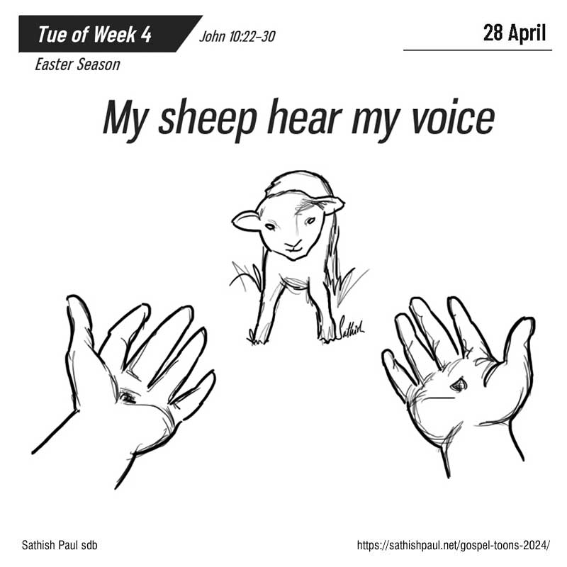 “Mes brebis écoutent ma voix ; moi, je les connais, et elles me suivent. Je leur donne la vie éternelle : jamais elles ne périront, et personne ne les arrachera de ma main. Mon Père, qui me les a données, est plus grand que tout, et personne ne peut les arracher de la main du Père. Le Père et moi, nous sommes UN.“ (Jn 10, 22-30)