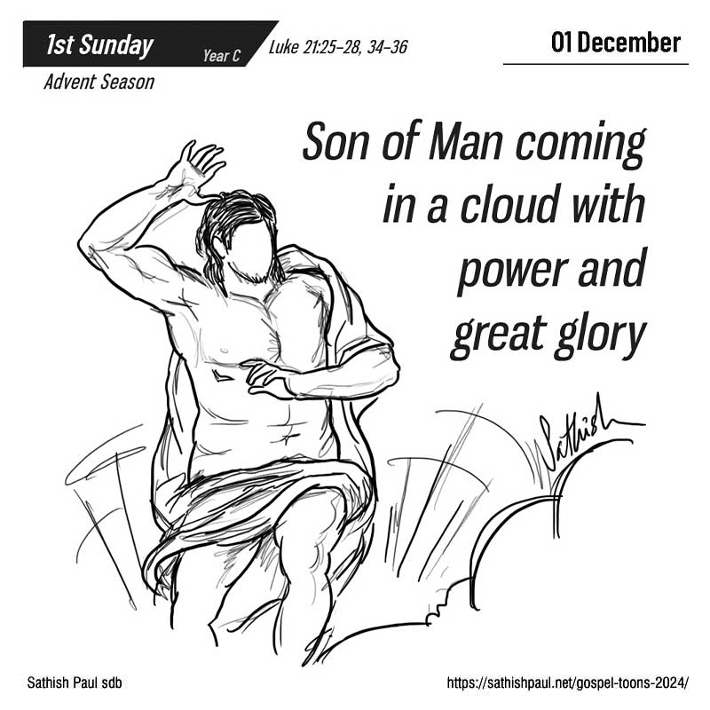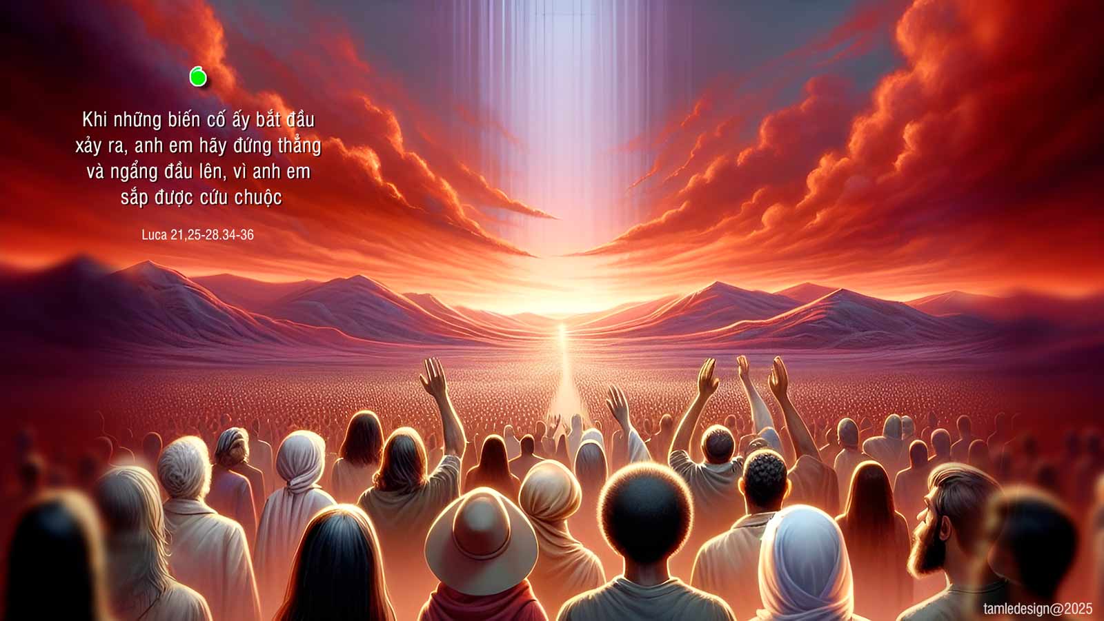 Hôm ấy, Đức Giê-su nói với các môn đệ rằng: “Sẽ có những điềm lạ trên mặt trời, mặt trăng và các vì sao. Dưới đất, muôn dân sẽ lo lắng hoang mang trước cảnh biển gào sóng thét. Người ta sợ đến hồn xiêu phách lạc, chờ những gì sắp giáng xuống địa cầu, vì các quyền lực trên trời sẽ bị lay chuyển. Bấy giờ thiên hạ sẽ thấy Con Người đầy quyền năng và vinh quang ngự trong đám mây mà đến. Khi những biến cố ấy bắt đầu xảy ra, anh em hãy đứng thẳng và ngẩng đầu lên, vì anh em sắp được cứu chuộc”…Vậy anh em phải đề phòng, chớ để lòng mình ra nặng nề vì chè chén say sưa, lo lắng sự đời, kẻo Ngày ấy như một chiếc lưới bất thần chụp xuống đầu anh em, vì Ngày ấy sẽ ập xuống trên mọi dân cư khắp mặt đất. Vậy anh em hãy tỉnh thức và cầu nguyện luôn, hầu đủ sức thoát khỏi mọi điều sắp xảy đến và đứng vững trước mặt Con Người”. Đó là lời Chúa.