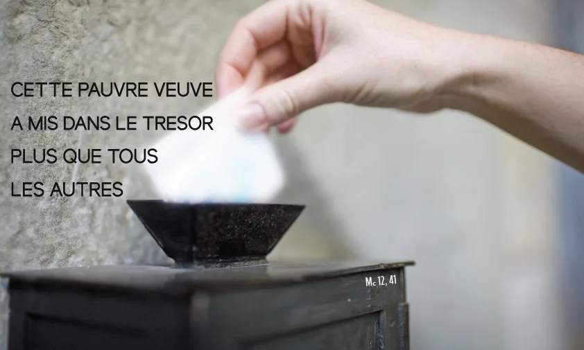 Jésus appela ses disciples et leur déclara: «Amen, je vous le dis: Cette pauvre veuve a mis dans le Trésor plus que tous les autres. Car tous, ils ont pris sur leur superflu, mais elle, elle a pris sur son indigence: Elle a mis tout ce qu’elle possédait, tout ce qu’elle avait pour vivre.» (Mc 12,38-44)