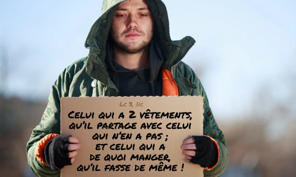 Les foules qui venaient se faire baptiser par Jean lui demandaient: «Que devons-nous faire?» Jean leur répondait: «Celui qui a deux vêtements, qu’il partage avec celui qui n’en a pas ; et celui qui a de quoi manger, qu’il fasse de même!» (Lc 3,10-18)