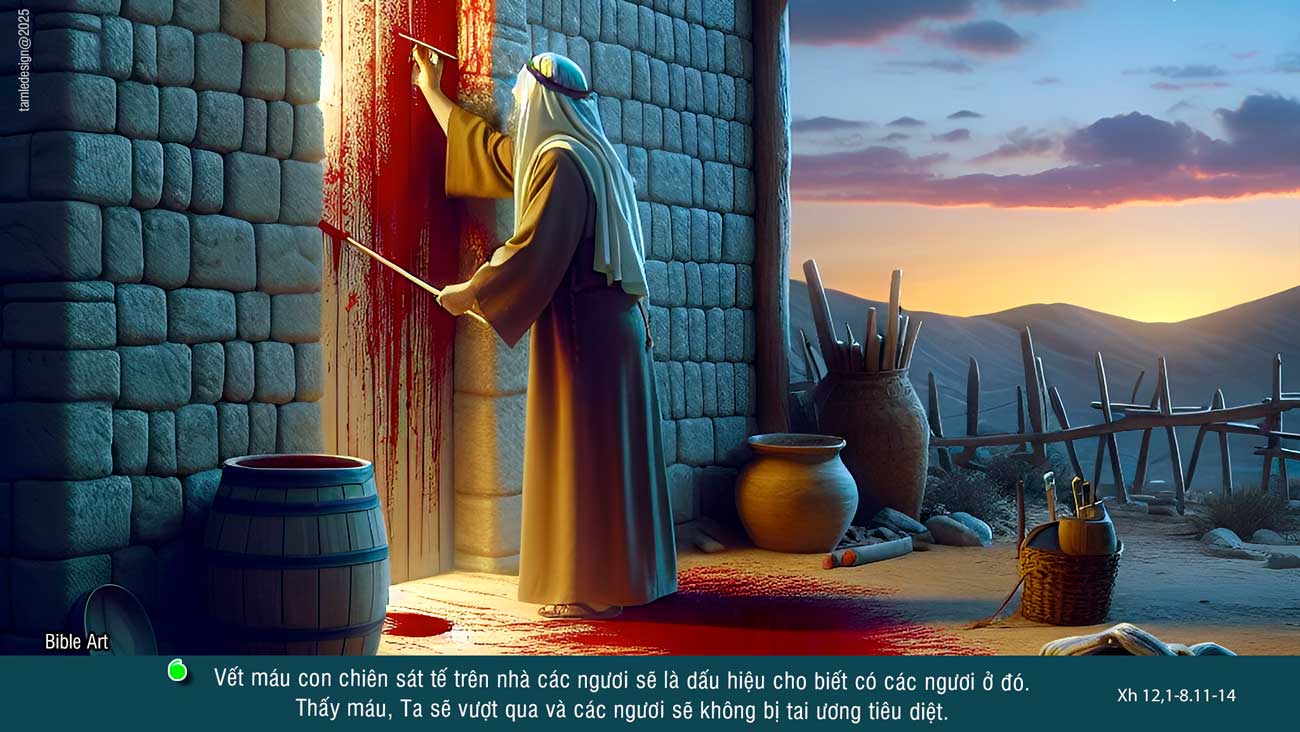 Ngày ấy, Đức Chúa phán với ông Mô-sê và ông A-ha-ron trên đất Ai-cập: “Tháng này, các ngươi phải kể là tháng đứng đầu các tháng, tháng thứ nhất trong năm. Hãy nói với toàn thể cộng đồng Ít-ra-en: Mồng mười tháng này, ai nấy phải bắt một con chiên cho gia đình mình, mỗi nhà một con. Nếu nhà ít người, không ăn hết một con, thì chung với người hàng xóm gần nhà mình nhất, tùy theo số người. Các ngươi sẽ tùy theo sức mỗi người ăn được bao nhiêu mà chọn con chiên. Con chiên đó phải toàn vẹn, phải là con đực, không quá một tuổi. Các ngươi bắt chiên hay dê cũng được. Phải nhốt nó cho tới ngày mười bốn tháng này, rồi toàn thể đại hội cộng đồng Ít-ra-en đem sát tế vào lúc xế chiều, lấy máu bôi lên khung cửa những nhà có ăn thịt chiên. Còn thịt, sẽ ăn ngay đêm ấy, nướng lên, ăn với bánh không men và rau đắng. Các ngươi phải ăn thế này: lưng thắt gọn, chân đi dép, tay cầm gậy. Các ngươi phải ăn vội vã: đó là lễ Vượt Qua mừng Đức Chúa. Đêm ấy Ta sẽ rảo khắp đất Ai-cập, sẽ sát hại các con đầu lòng trong đất Ai-cập, từ loài người cho đến loài thú vật, và sẽ trị tội chư thần Ai-cập: vì Ta là Đức Chúa. Còn vết máu trên nhà các ngươi sẽ là dấu hiệu cho biết có các ngươi ở đó. Thấy máu, Ta sẽ vượt qua, và các ngươi sẽ không bị tai ương tiêu diệt khi Ta giáng hoạ trên đất Ai-cập. Các ngươi phải lấy ngày đó làm ngày tưởng niệm, ngày đại lễ mừng Đức Chúa. Qua mọi thế hệ, các ngươi phải mừng ngày lễ này: đó là quy định cho đến muôn đời. Đó là lời Chúa.