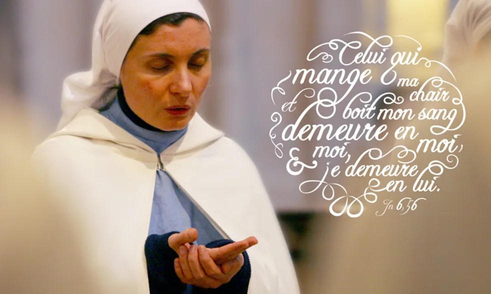 Celui qui mange ma chair et boit mon sang demeure en moi, et moi, je demeure en lui. De même que le Père, qui est vivant, m’a envoyé, et que moi je vis par le Père, de même celui qui me mange, lui aussi vivra par moi. Tel est le pain qui est descendu du ciel: Il n’est pas comme celui que les pères ont mangé. Eux, ils sont morts ; celui qui mange ce pain vivra éternellement. (Jn 6, 51-58)