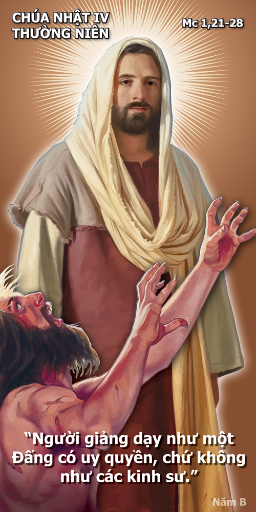 Tại thành Ca-phác-na-um, ngày sa-bát, Đức Giê-su vào hội đường giảng dạy. Thiên hạ sửng sốt về lời giảng dạy của Người, vì Người giảng dạy như một Đấng có thẩm quyền, chứ không như các kinh sư. Lập tức, trong hội đường của họ, có một người bị thần ô uế nhập, la lên rằng: “Ông Giê-su Na-da-rét, chuyện chúng tôi can gì đến ông mà ông đến tiêu diệt chúng tôi? Tôi biết ông là ai rồi: ông là Đấng Thánh của Thiên Chúa!” Nhưng Đức Giê-su quát mắng nó: “Câm đi, hãy xuất khỏi người này!” Thần ô uế lay mạnh người ấy, thét lên một tiếng, và xuất khỏi anh ta. Mọi người đều kinh ngạc đến nỗi họ bàn tán với nhau: “Thế nghĩa là gì? Giáo lý thì mới mẻ, người dạy lại có uy quyền. Ông ấy ra lệnh cho cả các thần ô uế và chúng phải tuân lệnh!” Lập tức danh tiếng Người đồn ra mọi nơi, khắp cả vùng lân cận miền Ga-li-lê.