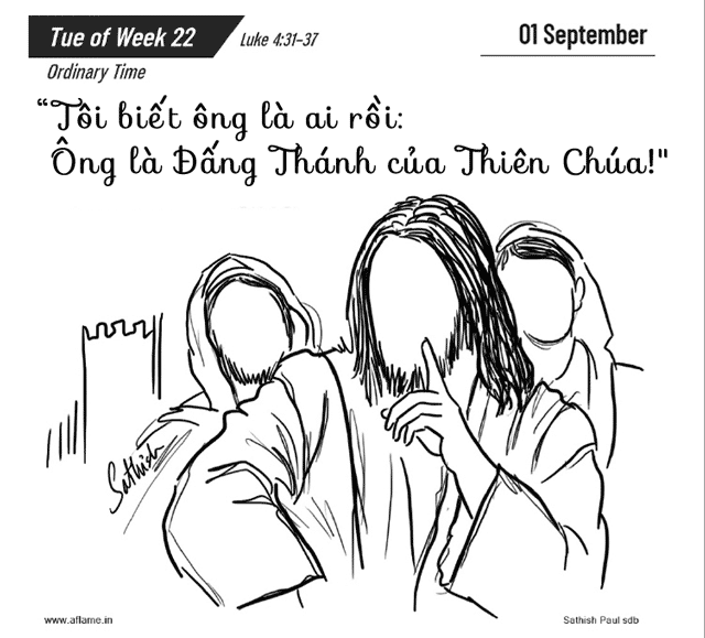 Bấy giờ, Đức Giê-su xuống Ca-phác-na-um, một thành miền Ga-li-lê, và ngày sa-bát, Người giảng dạy dân chúng. Họ sửng sốt về cách Người giảng dạy, vì lời của Người có uy quyền. Trong hội đường, có một người bị quỷ thần ô uế nhập, la to lên rằng: “Ông Giê-su Na-da-rét, chuyện chúng tôi can gì đến ông, mà ông đến tiêu diệt chúng tôi? Tôi biết ông là ai rồi: ông là Đấng Thánh của Thiên Chúa!” Nhưng Đức Giê-su quát mắng nó: “Câm đi, hãy xuất khỏi người này!” Quỷ vật người ấy ngã xuống giữa hội đường, rồi xuất khỏi anh ta, nhưng không làm hại gì anh. Nỗi kinh ngạc trùm lên mọi người, và họ nói với nhau: “Lời ấy là thế nào? Ông ấy lấy uy quyền và thế lực mà ra lệnh cho các thần ô uế, và chúng phải xuất!” Và tiếng đồn về Người lan ra khắp nơi trong vùng. Đó là lời Chúa.