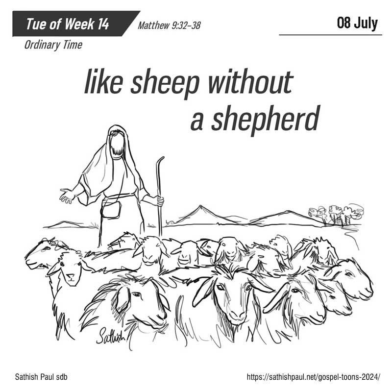 Khi ấy, người ta đem đến cho Đức Giê-su một người câm bị quỷ ám. Khi quỷ bị trục xuất rồi, thì người câm nói được. Đám đông kinh ngạc, nói rằng: “Ở Ít-ra-en, chưa hề thấy thế bao giờ!” Nhưng người Pha-ri-sêu lại bảo: “Ông ấy dựa thế quỷ vương mà trừ quỷ”. Đức Giê-su đi khắp các thành thị, làng mạc, giảng dạy trong các hội đường của họ, rao giảng Tin Mừng Nước Trời và chữa hết các bệnh hoạn tật nguyền. Đức Giê-su thấy đám đông thì chạnh lòng thương, vì họ lầm than vất vưởng, như bầy chiên không người chăn dắt. Bấy giờ, Người nói với môn đệ rằng: “Lúa chín đầy đồng, mà thợ gặt lại ít. Vậy anh em hãy xin chủ mùa gặt sai thợ ra gặt lúa về”. Đó là lời Chúa.
