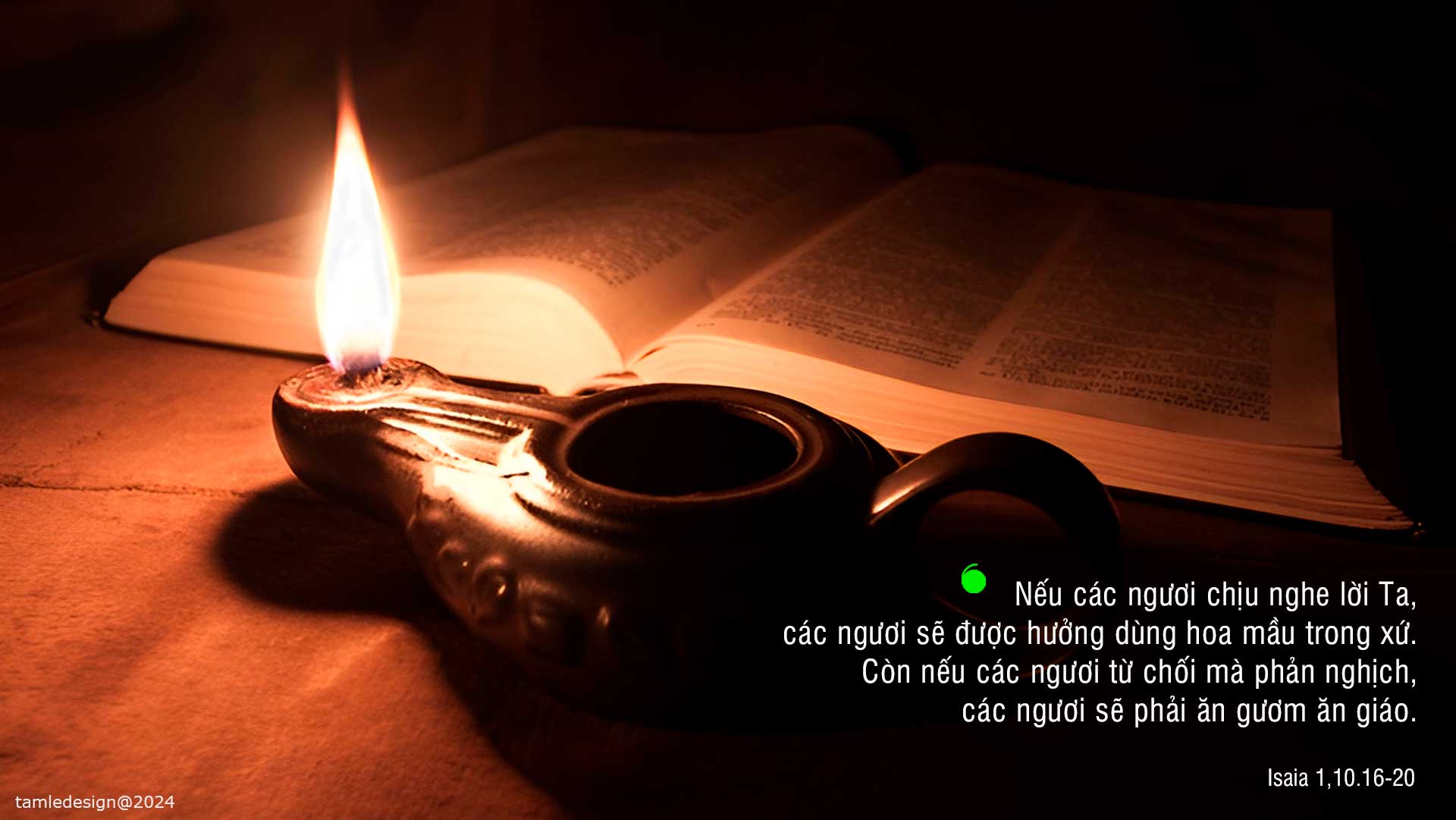 Hỡi những kẻ làm đầu Xơ-đôm, hãy nghe lời Đức Chúa phán. Hỡi dân Gô-mô-ra, hãy lắng tai nghe Thiên Chúa chúng ta dạy bảo… Hãy rửa cho sạch, tẩy cho hết, và vứt bỏ tội ác của các ngươi cho khỏi chướng mắt Ta. Đừng làm điều ác nữa. Hãy tập làm điều thiện, tìm kiếm lẽ công bình, sửa phạt người áp bức, xử công minh cho cô nhi, biện hộ cho quả phụ. Đức Chúa phán: “Hãy đến đây, ta cùng nhau tranh luận! Tội các ngươi, dầu có đỏ như son, cũng ra trắng như tuyết; có thẫm tựa vải điều, cũng hoá trắng như bông. Nếu các ngươi chịu nghe lời Ta, các ngươi sẽ được hưởng dùng hoa mầu trong xứ. Còn nếu các ngươi từ chối mà phản nghịch, các ngươi sẽ phải ăn gươm ăn giáo.” Miệng Đức Chúa đã phán như vậy. Đó là lời Chúa.