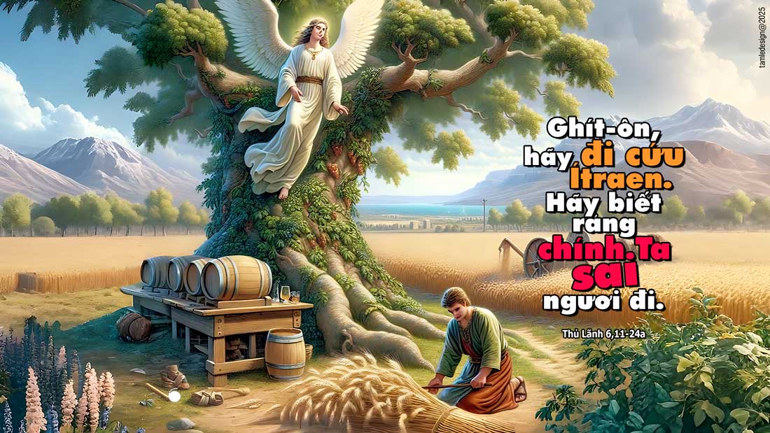 Ngày ấy, Thần sứ của Đức Chúa đến và ngồi dưới cây tùng ở Óp-ra. Cây này là của ông Giô-át, thuộc gia đình A-vi-e-de. Con ông là Ghít-ôn bấy giờ đang đập lúa trong bồn đạp nho để tránh mặt người Ma-đi-an. Thần sứ Đức Chúa hiện ra với ông và nói: “Chào chiến sĩ can trường! Đức Chúa ở với ông.” Ông Ghít-ôn đáp: “Ôi, thưa Ngài, nếu Đức Chúa ở với chúng tôi, thì sao chúng tôi đến nông nỗi này? Đâu cả rồi những kỳ công mà cha ông đã kể lại cho chúng tôi nghe? Các ngài đã nói: Chẳng phải Đức Chúa đã đưa chúng ta lên khỏi Ai-cập sao? Thế mà bây giờ Đức Chúa đã bỏ rơi chúng tôi, trao chúng tôi vào tay người Ma-đi-an.” Bấy giờ Đức Chúa quay lại nhìn ông và nói: “Hãy mạnh bạo lên đường cứu Ít-ra-en khỏi tay quân Ma-đi-an. Không phải chính Ta sai ngươi sao?” Nhưng ông đáp: “Ôi, thưa Ngài, con lấy gì mà cứu Ít-ra-en? Này dòng họ con thấp kém nhất trong chi tộc Mơ-na-se, mà con lại nhỏ nhất trong nhà cha con.” Đức Chúa phán với ông: “Ta sẽ ở với ngươi, và ngươi sẽ đánh quân Ma-đi-an như đánh có một người.” Ông thưa: “Nếu Ngài thương con thì xin cho con một dấu chứng tỏ Ngài đang nói vơí con. Xin Ngài đừng rời khỏi đây cho tới khi con trở lại, mang theo của lễ đặt trước nhan Ngài.” Người phán: “Ta sẽ ở lại cho tới khi ngươi trở về.” Ông Ghít-ôn đi bắt một con dê non làm thịt, và lấy hai thùng bột làm mấy chiếc bánh không men. Thịt thì ông để trong một cái rổ, còn nước cốt thì đựng trong một cái thố. Rồi ông mang đến cho Người ở dưới cây tùng. Khi ông đến gần, thì Thần sứ Thiên Chúa nói với ông: “Hãy lấy thịt và bánh không men đặt trên tảng đá này và rưới nước cốt lên.” Ông đã làm như thế. Thần sứ của Đức Chúa giơ dầu gậy đang cầm trong tay đụng vào thịt và bánh không men, lửa liền từ tảng đá bốc lên, đốt cháy hết thịt cùng bánh không men. Thần sứ Đức Chúa biến khỏi mắt ông. Ông Ghít-ôn thấy đó chính là Thần sứ Đức Chúa. Ông Ghít-ôn nói: “Chết tôi rồi, lạy Đức Chúa là Chúa Thượng của tôi, vì tôi đã thấy Thần sứ Đức Chúa nhãn tiền!” Nhưng Đức Chúa phán với ông: “Bình an cho ngươi! Đừng sợ: ngươi không chết đâu.” Tại đó, ông Ghít-ôn xây một bàn thờ kính Đức Chúa, và ông gọi nơi ấy là Đức Chúa – Bình an. Đó là lời Chúa.
