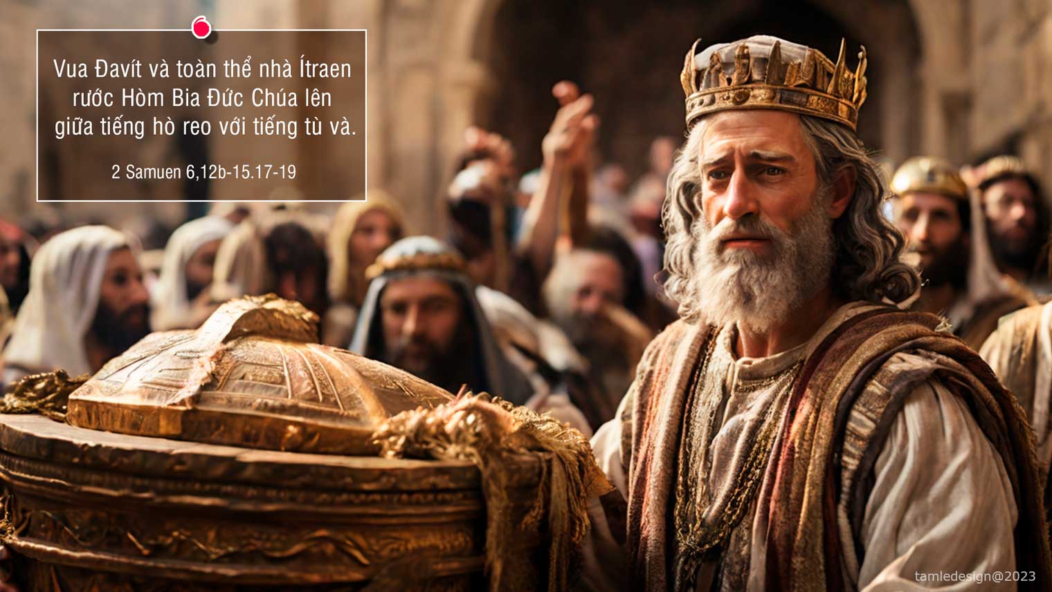 Hôm đó, vua Đa-vít ra đi và rước Hòm Bia Thiên Chúa từ nhà ông Ô-vết Ê-đôm lên Thành vua Đa-vít, trong niềm hân hoan. Khi những người khiêng Hòm Bia của Đức Chúa đi được sáu bước, thì vua sát tế một con bò và một con bê béo. Vua Đa-vít quấn ê-phốt vải gai, nhảy múa hết sức mình trước nhan Đức Chúa. Vua Đa-vít và toàn thể nhà Ít-ra-en rước Hòm Bia Đức Chúa lên giữa tiếng hò reo với tiếng tù và. Người ta đưa Hòm Bia Đức Chúa đặt vào chỗ đã dọn giữa lều vua Đa-vít đã dựng sẵn. Vua Đa-vít dâng lên trước nhan Đức Chúa những lễ toàn thiêu và những lễ kỳ an. Khi đã hoàn tất việc dâng các lễ toàn thiêu và lễ kỳ an, vua Đa-vít nhân danh Đức Chúa các đạo binh chúc phúc cho dân. Rồi vua phân phát cho toàn dân, cho tất cả đám đông Ít-ra-en, đàn ông cũng như đàn bà, mỗi người một cái bánh ngọt, một phần thịt và một cái bánh nho. Rồi toàn dân ai nấy về nhà mình. Đó là lời Chúa.