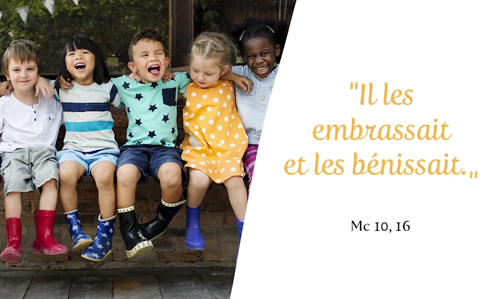 En ce temps-là, des gens présentaient à Jésus des enfants pour qu’il pose la main sur eux; mais les disciples les écartèrent vivement. Voyant cela, Jésus se fâcha et leur dit: «Laissez les enfants venir à moi, ne les empêchez pas, car le royaume de Dieu est à ceux qui leur ressemblent. Amen, je vous le dis : celui qui n’accueille pas le royaume de Dieu à la manière d’un enfant n’y entrera pas.» Il les embrassait et les bénissait en leur imposant les mains. (Mc 10, 13-16)