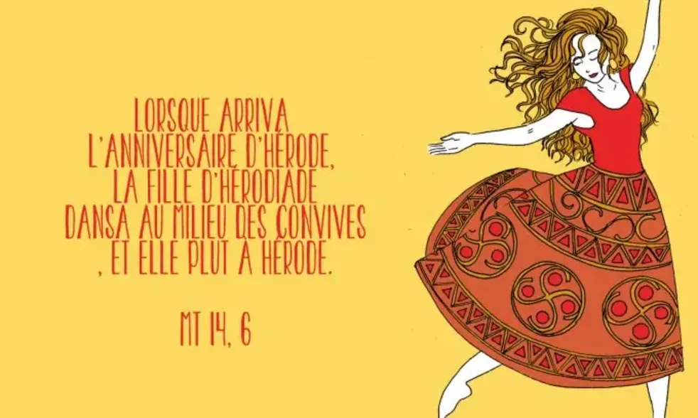 Lorsque arriva l’anniversaire d’Hérode, la fille d’Hérodiade dansa au milieu des convives, et elle plut à Hérode. Alors il s’engagea par serment à lui donner ce qu’elle demanderait. Poussée par sa mère, elle dit : « Donne-moi ici, sur un plat, la tête de Jean le Baptiste. » Le roi fut contrarié ; mais à cause de son serment et des convives, il commanda de la lui donner. (Mt 14, 1-12)