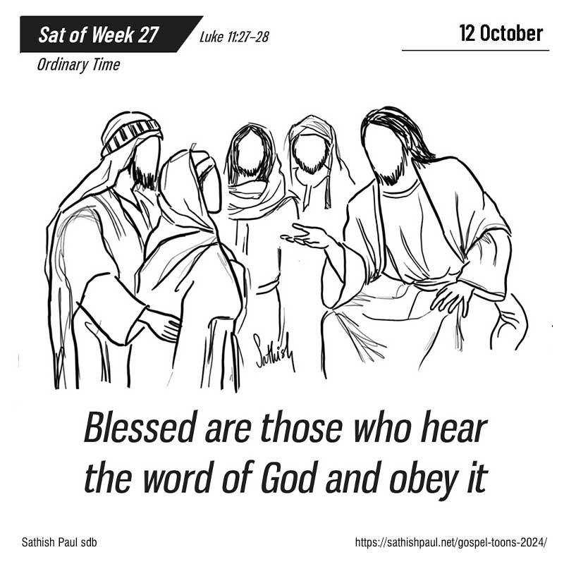 Khi Đức Giê-su đang giảng dạy, thì giữa đám đông có một người phụ nữ lên tiếng thưa với Người: “Phúc thay người mẹ đã cưu mang và cho Thầy bú mớm!” Nhưng Người đáp lại: “Đúng hơn phải nói rằng: Phúc thay kẻ lắng nghe và tuân giữ lời Thiên Chúa”. Đó là lời Chúa.