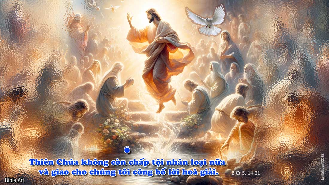 Thưa anh em, tình yêu Đức Ki-tô thôi thúc chúng tôi, vì chúng tôi nghĩ rằng: nếu một người đã chết thay cho mọi người, thì mọi người đều chết. Đức Ki-tô đã chết thay cho mọi người, để những ai đang sống không còn sống cho chính mình nữa, mà sống cho Đấng đã chết và sống lại vì mình. Vì thế, từ đây chúng tôi không còn biết một ai theo quan điểm loài người. Và cho dù chúng tôi đã được biết Đức Ki-tô theo quan điểm loài người, thì giờ đây chúng tôi không còn biết Người như vậy nữa. Cho nên, phàm ai ở trong Đức Ki-tô đều là thọ tạo mới. Cái cũ đã qua, và cái mới đã có đây rồi. Mọi sự ấy đều do bởi Thiên Chúa là Đấng đã nhờ Đức Ki-tô mà cho chúng ta được hoà giải với Người, và trao cho chúng tôi chức vụ hoà giải. Thật vậy, trong Đức Ki-tô, Thiên Chúa đã cho thế gian được hoà giải với Người. Người không còn chấp tội nhân loại nữa, và giao cho chúng tôi công bố lời hoà giải. Vì thế, chúng tôi là sứ giả thay mặt Đức Ki-tô, như thể chính Thiên Chúa dùng chúng tôi mà khuyên dạy. Vậy, nhân danh Đức Ki-tô, chúng tôi nài xin anh em hãy làm hoà với Thiên Chúa. Đấng chẳng hề biết tội là gì, thì Thiên Chúa đã biến Người thành hiện thân của tội lỗi vì chúng ta, để làm cho chúng ta nên công chính trong Người. Đó là lời Chúa.