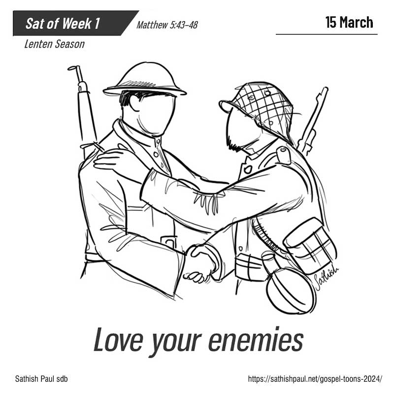 Khi ấy, Đức Giê-su nói với các môn đệ rằng: “”Anh em đã nghe Luật dạy rằng: Hãy yêu đồng loại và hãy ghét kẻ thù. Còn Thầy, Thầy bảo anh em: hãy yêu kẻ thù và cầu nguyện cho những kẻ ngược đãi anh em. Như vậy, anh em mới được trở nên con cái của Cha anh em, Đấng ngự trên trời, vì Người cho mặt trời của Người mọc lên soi sáng kẻ xấu cũng như người tốt, và cho mưa xuống trên người công chính cũng như kẻ bất chính. Vì nếu anh em yêu thương kẻ yêu thương mình, thì anh em nào có công chi? Ngay cả những người thu thuế cũng chẳng làm như thế sao? Nếu anh em chỉ chào hỏi anh em mình thôi, thì anh em có làm gì lạ thường đâu? Ngay cả người ngoại cũng chẳng làm như thế sao? Vậy anh em hãy nên hoàn thiện, như Cha anh em trên trời là Đấng hoàn thiện. Đó là lời Chúa.