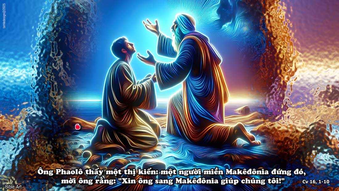 Hồi ấy, ông Phao-lô đến Đéc-bê, rồi đến Lýt-ra. Ở đó có một môn đệ tên là Ti-mô-thê, mẹ là người Do-thái đã tin Chúa, còn cha là người Hy-lạp. Ông được các anh em ở Lýt-ra và I-cô-ni-ô chứng nhận là tốt. Ông Phao-lô muốn ông ấy cùng lên đường với mình, nên đã đem ông đi làm phép cắt bì, vì nể các người Do-thái ở những nơi ấy; thật vậy, ai cũng biết cha ông là người Hy-lạp. Khi đi qua các thành, các ông truyền lại cho các anh em những chỉ thị đã được các Tông Đồ và kỳ mục ở Giê-ru-sa-lem ban bố, để họ tuân giữ. Vậy các Hội Thánh được vững mạnh trong đức tin và mỗi ngày thêm đông số. Các ông đi qua miền Phy-gi-a và Ga-lát, vì Thánh Thần ngăn cản không cho các ông rao giảng lời Chúa ở Tiểu Á. Khi tới sát ranh giới My-xi-a, các ông thử vào miền Bi-thy-ni-a, nhưng Thần Khí Đức Giê-su không cho phép. Các ông bèn đi qua miền My-xi-a mà xuống Tơ-roa. Ban đêm, ông Phao-lô thấy một thị kiến: một người miền Ma-kê-đô-ni-a đứng đó, mời ông rằng: “Xin ông sang Ma-kê-đô-ni-a giúp chúng tôi!” Sau khi ông thấy thị kiến đó, lập tức chúng tôi tìm cách đi Ma-kê-đô-ni-a, vì hiểu ra rằng Thiên Chúa kêu gọi chúng tôi loan báo Tin Mừng cho họ. Đó là lời Chúa.