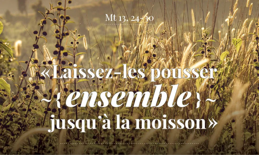 Les serviteurs lui disent: “Veux-tu donc que nous allions l’enlever?” Il répond: “Non, en enlevant l’ivraie, vous risquez d’arracher le blé en même temps. Laissez-les pousser ensemble jusqu’à la moisson; et, au temps de la moisson, je dirai aux moissonneurs: Enlevez d’abord l’ivraie, liez-la en bottes pour la brûler ; quant au blé, ramassez-le pour le rentrer dans mon grenier.”» (Mt 13, 24-30)