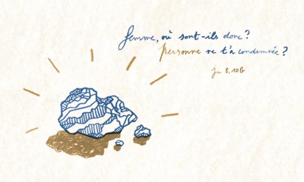 Eux, après avoir entendu cela, s’en allaient un par un, en commençant par les plus âgés. Jésus resta seul avec la femme toujours là au milieu. Il se redressa et lui demanda: «Femme, où sont-ils donc? Personne ne t’a condamnée?» Elle répondit: «Personne, Seigneur.» Et Jésus lui dit: «Moi non plus, je ne te condamne pas. Va, et désormais ne pèche plus.» (Jn 8,1-11)