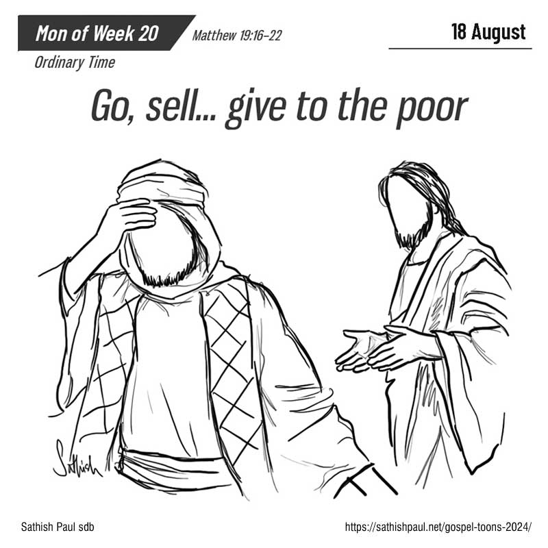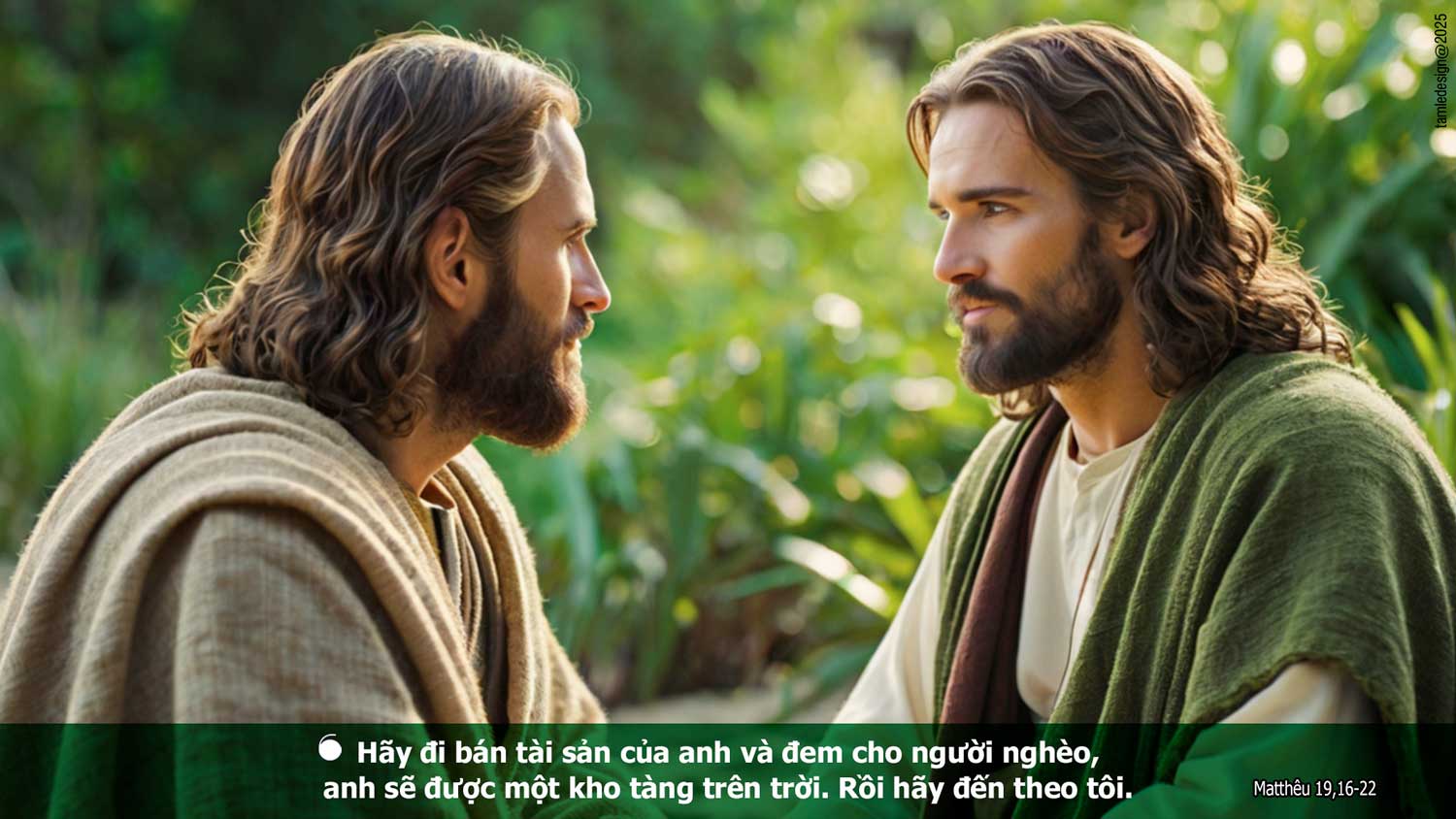 Một hôm, có một người đến thưa Đức Giê-su rằng: “Thưa Thầy, tôi phải làm điều gì tốt để được hưởng sự sống đời đời?” Đức Giê-su đáp: “Sao anh hỏi tôi về điều tốt? Chỉ có một Đấng tốt lành mà thôi. Nếu anh muốn vào cõi sống, thì hãy giữ các điều răn”. Người ấy hỏi: “Điều răn nào?” Đức Giê-su đáp: “Ngươi không được giết người. Ngươi không được ngoại tình. Ngươi không được trộm cắp. Ngươi không được làm chứng gian. Ngươi phải thờ cha kính mẹ”, và “Ngươi phải yêu đồng loại như yêu chính mình”. Người thanh niên ấy nói: “Tất cả những điều đó, tôi đã tuân giữ, tôi còn thiếu điều gì nữa?” Đức Giê-su đáp: “Nếu anh muốn nên hoàn thiện, thì hãy đi bán tài sản của anh và đem cho người nghèo, anh sẽ được một kho tàng trên trời. Rồi hãy đến theo tôi”. Nghe lời đó, người thanh niên buồn rầu bỏ đi, vì anh ta có nhiều của cải. Đó là lời Chúa.