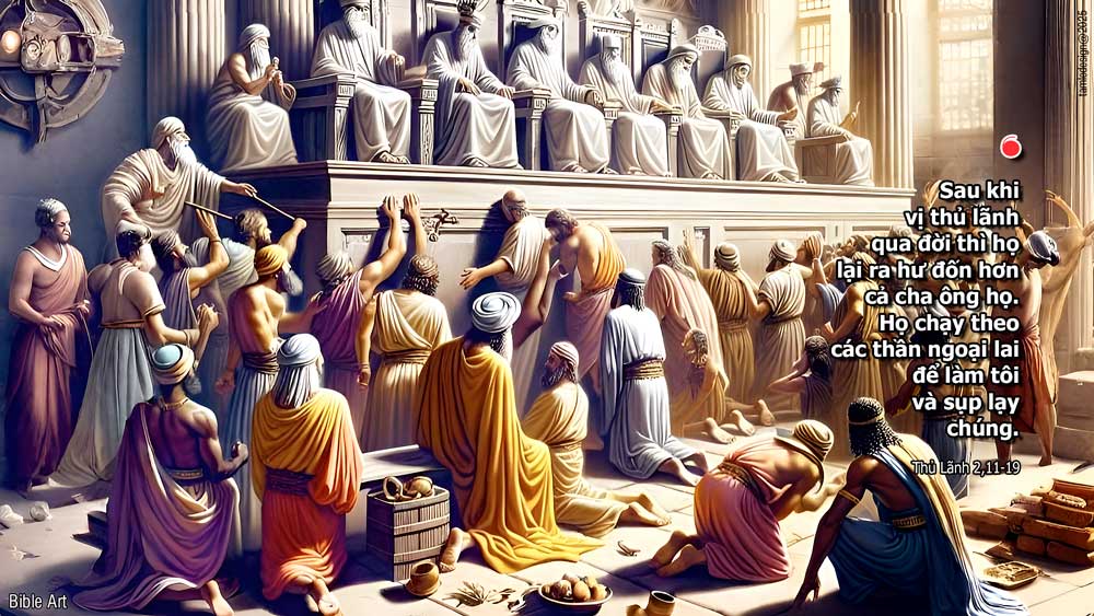 Hồi ấy, con cái Ít-ra-en đã làm điều dữ trước mắt Đức Chúa, và đã làm tôi các thần Ba-an. Họ đã lìa bỏ Đức Chúa, Thiên Chúa của tổ tiên, Đấng đã đưa họ ra khỏi đất Ai-cập, và họ đã đi theo các thần ngoại lai trong số các thần của các dân chung quanh. Họ sụp lạy các thần ấy và chọc giận Đức Chúa. Họ đã lìa bỏ Đức Chúa để làm tôi thần Ba-an và các nữ thần Á-tô-rét. Đức Chúa nổi cơn thịnh nộ với Ít-ra-en và đã trao họ vào tay quân cướp cho chúng tha hồ bóc lột; Người đã trao họ vào tay kẻ thù chung quanh, nên họ không thể đương đầu nổi với kẻ thù. Cứ mỗi lần họ xuất trận là tay Đức Chúa giáng hoạ trên họ, như Đức Chúa đã phán và thề với họ. Họ lâm cảnh khốn cùng. Bấy giờ Đức Chúa cho xuất hiện các thủ lãnh để giải thoát họ khỏi tay những kẻ cướp phá họ. Nhưng rồi các thủ lãnh của họ, họ cũng chẳng nghe mà cứ đàng điếm với các thần ngoại lai và sụp lạy các thần đó. Họ vội bỏ con đường cha ông họ đã đi, là tuân giữ mệnh lệnh của Đức Chúa; họ đã không noi gương các ngài. Khi Đức Chúa cho xuất hiện các thủ lãnh để giúp họ, thì Đức Chúa ở với vị thủ lãnh và Người cứu họ khỏi tay quân thù bao lâu vị thủ lãnh còn sống, vì Đức Chúa động lòng trắc ẩn trước những tiếng than khóc của họ, khi họ bị đàn áp và ức hiếp. Nhưng sau khi vị thủ lãnh qua đời thì họ lại ra hư đốn hơn cả cha ông họ. Họ chạy theo các thần ngoại lai để làm tôi và sụp lạy chúng, chứ không từ bỏ những hành vi và đường lối ngoan cố của họ. Đó là lời Chúa.