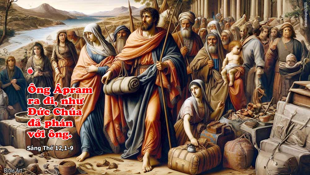 Hồi đó, Đức Chúa phán với ông Áp-ram: “Hãy rời bỏ xứ sở, họ hàng và nhà cha ngươi, mà đi tới đất Ta sẽ chỉ cho ngươi. Ta sẽ làm cho ngươi thành một dân lớn, sẽ chúc phúc cho ngươi. Ta sẽ cho tên tuổi ngươi được lừng lẫy, và ngươi sẽ là một mối phúc lành. Ta sẽ chúc phúc cho những ai chúc phúc ngươi; Ai nhục mạ ngươi, Ta sẽ nguyền rủa. Nhờ ngươi, mọi gia tộc trên mặt đất sẽ được chúc phúc.” Ông Áp-ram ra đi, như Đức Chúa đã phán với ông. Ông Áp-ram được bảy mươi lăm tuổi khi ông rời Kha-ran. Ông Áp-ram đem theo vợ là bà Xa-rai, cháu là ông Lót, và mọi tài sản họ đã gầy dựng được, cùng với gia nhân họ đã có tại Kha-ran. Họ ra đi về phía đất Ca-na-an và đã tới đất đó. Ông Áp-ram đi qua đất ấy, đến nơi gọi là Si-khem, đến cầy Sồi Mô-re. Thời bấy giờ, người Ca-na-an đang ở trong đất ấy. Đức Chúa hiện ra với ông Áp-ram và phán: “Ta sẽ ban đất này cho dòng dõi ngươi.” Tại đây ông dựng một bàn thờ để kính Đức Chúa, Đấng đã hiện ra với ông. Từ chỗ ấy, ông sang miền núi, ở phía đông Bết Ên. Ông cắm lều giữa Bết Ên ở phía tây và Ai ở phía đông. Tại đây ông dựng một bàn thờ để kính Đức Chúa và ông kêu cầu danh Đức Chúa. Rồi ông đi từ chặng nọ qua chặng kia đến miền Ne-ghép. Đó là lời Chúa.
