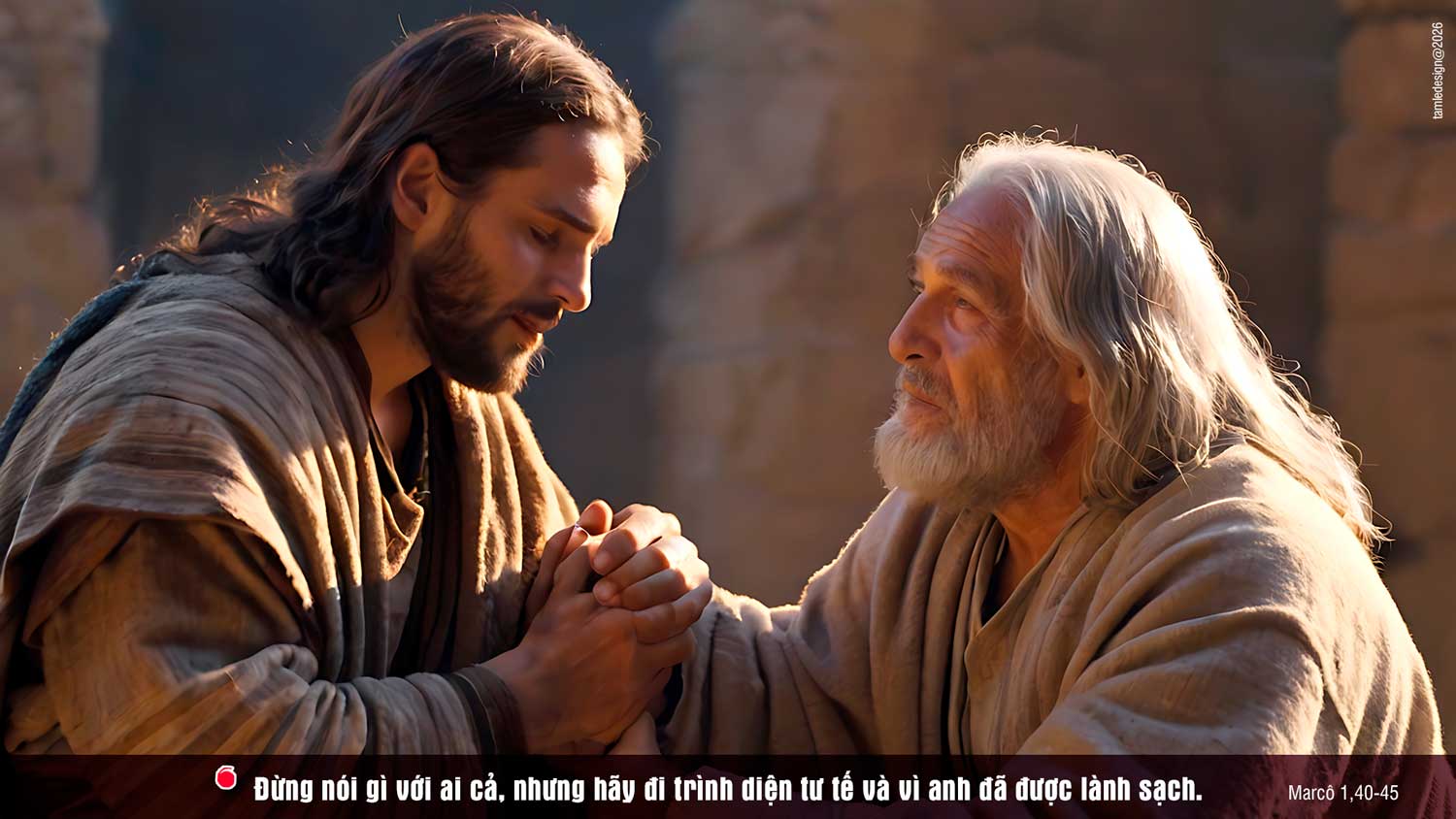 Khi ấy, có người mắc bệnh phong đến gặp Đức Giê-su, anh ta quỳ xuống van xin rằng: “Nếu Ngài muốn, Ngài có thể làm cho tôi được sạch.” Người chạnh lòng thương giơ tay đụng vào anh và bảo: “Tôi muốn, anh sạch đi!” Lập tức, bệnh phong biến khỏi anh, và anh được sạch. Nhưng Người nghiêm giọng đuổi anh đi ngay, và bảo anh: “Coi chừng, đừng nói gì với ai cả, nhưng hãy đi trình diện tư tế, và vì anh đã được lành sạch, thì hãy dâng những gì ông Mô-sê đã truyền, để làm chứng cho người ta biết.” Nhưng vừa ra khỏi đó, anh đã bắt đầu rao truyền và tung tin ấy khắp nơi, đến nỗi Người không thể công khai vào thành nào được, mà phải ở lại những nơi hoang vắng ngoài thành. Và dân chúng từ khắp nơi kéo đến với Người. Đó là lời Chúa.