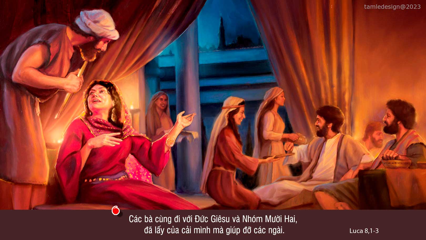 Các bà cùng đi với Đức Giêsu và Nhóm Mười Hai, đã lấy của cải mình mà giúp đỡ các ngài.