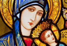 Năm trinh nữ khôn ngoan mang đèn với chai dầu. Nửa đêm có tiếng gọi: “Kìa Tân Lang là Đức Ki-tô đã tới, hãy ra nghênh đón Người.”