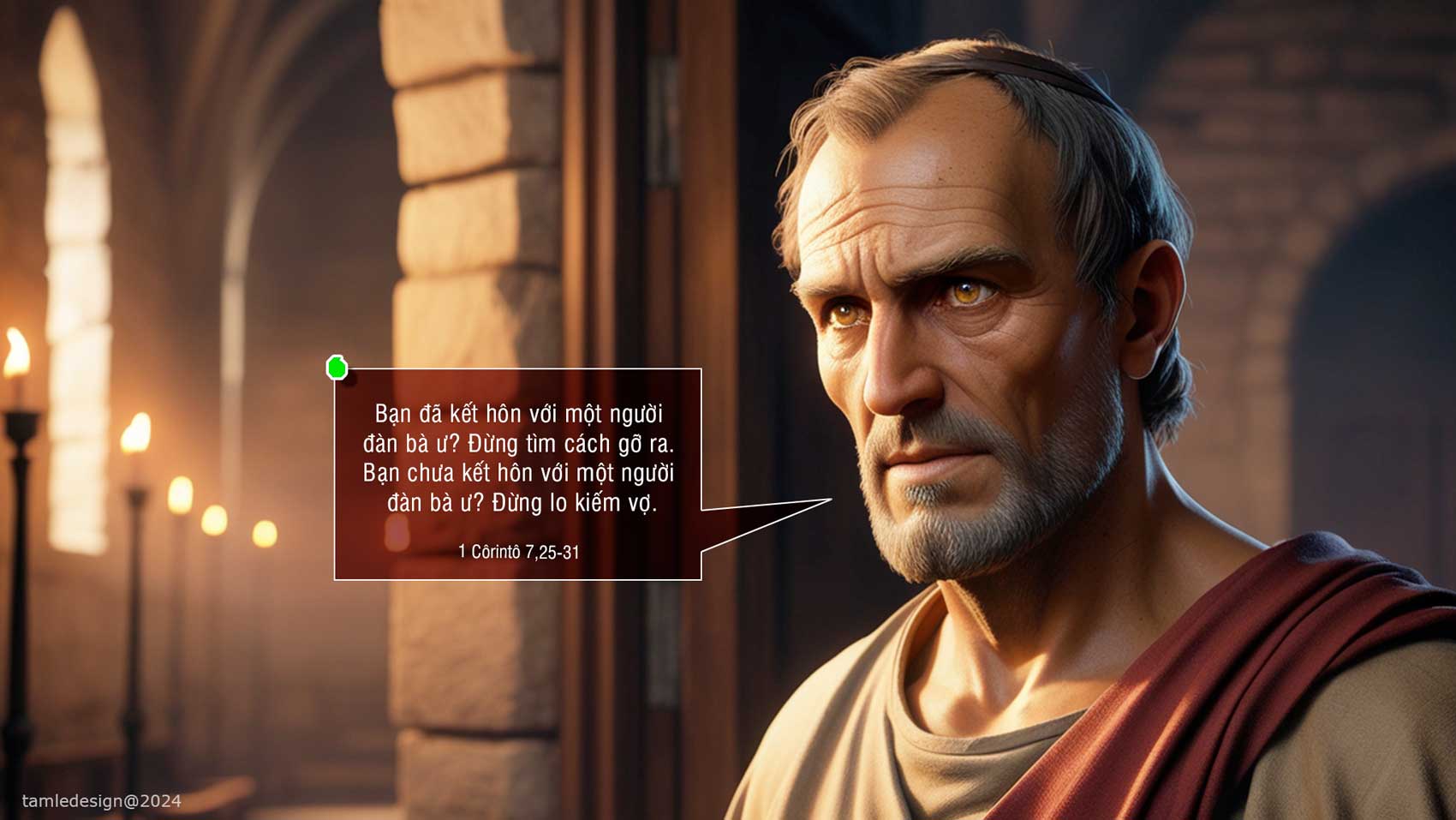 Thưa anh em, về vấn đề độc thân, tôi không có chỉ thị nào của Chúa, nhưng tôi chỉ khuyên nhủ anh em với tư cách là người –nhờ Chúa thương– đáng được anh em tín nhiệm. Vậy tôi nghĩ rằng: vì những nỗi thống khổ hiện tại, ở vậy là điều tốt. Phải, tôi nghĩ rằng đối với người ta, như thế là tốt. Bạn đã kết hôn với một người đàn bà ư? Đừng tìm cách gỡ ra. Bạn chưa kết hôn với một người đàn bà ư? Đừng lo kiếm vợ. Nhưng nếu bạn cưới vợ, thì cũng chẳng có tội gì. Và nếu người con gái lấy chồng, thì cũng chẳng có tội gì. Tuy nhiên, những người ấy sẽ tự chuốc lấy những nỗi gian truân khốn khổ. Mà tôi, tôi muốn cho anh em thoát khỏi điều đó. Thưa anh em, tôi xin nói với anh em điều này: thời gian chẳng còn bao lâu. Vậy từ nay những người có vợ hãy sống như không có; ai khóc lóc, hãy làm như không khóc; ai vui mừng, như chẳng mừng vui; ai mua sắm, hãy làm như không có gì cả; kẻ hưởng dùng của cải đời này, hãy làm như chẳng hưởng. Vì bộ mặt thế gian này đang biến đi. Ðó là lời Chúa.