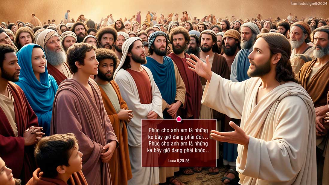 Bấy giờ, Đức Giê-su dừng lại ở một chỗ đất bằng. Nơi đây có đông đảo dân chúng tìm đến với Người. Đức Giê-su ngước mắt lên nhìn các môn đệ và nói: “Phúc cho anh em là những kẻ nghèo khó, vì Nước Thiên Chúa là của anh em. Phúc cho anh em là những kẻ bây giờ đang phải đói, vì Thiên Chúa sẽ cho anh em được no lòng. “Phúc cho anh em là những kẻ bây giờ đang phải khóc, vì anh em sẽ được vui cười. Phúc cho anh em khi vì Con Người mà bị người ta oán ghét, khai trừ, sỉ vả và bị xoá tên như đồ xấu xa. Ngày đó, anh em hãy vui mừng nhảy múa, vì này đây phần thưởng dành cho anh em ở trên trời thật lớn lao. Bởi lẽ các ngôn sứ cũng đã từng bị cha ông họ đối xử như thế. Nhưng khốn cho các ngươi là những kẻ giàu có, vì các ngươi đã được phần an ủi của mình rồi. Khốn cho các ngươi, hỡi những kẻ bây giờ đang được no nê, vì các ngươi sẽ phải đói. “Khốn cho các ngươi, hỡi những kẻ bây giờ đang được vui cười, vì các ngươi sẽ phải sầu khổ khóc than. Khốn cho các ngươi khi được mọi người ca tụng, vì các ngôn sứ giả cũng đã từng được cha ông họ đối xử như thế.” Đó là lời Chúa.