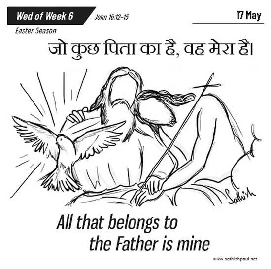 Khi ấy, Đức Giê-su nói với các môn đệ rằng: “Thầy còn nhiều điều phải nói với anh em. Nhưng bây giờ, anh em không có sức chịu nổi. Khi nào Thần Khí sự thật đến, Người sẽ dẫn anh em tới sự thật toàn vẹn. Người sẽ không tự mình nói điều gì, nhưng tất cả những gì Người nghe, Người sẽ nói lại, và loan báo cho anh em biết những điều sẽ xảy đến. Người sẽ tôn vinh Thầy, vì Người sẽ lấy những gì của Thầy mà loan báo cho anh em. Mọi sự Chúa Cha có đều là của Thầy. Vì thế, Thầy đã nói: Người lấy những gì của Thầy mà loan báo cho anh em.” Đó là lời Chúa.