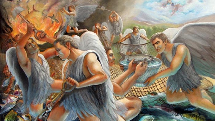Khi ấy, Đức Giê-su kể cho dân chúng nghe dụ ngôn này: “Nước Trời lại còn giống như chuyện chiếc lưới thả xuống biển, gom được đủ thứ cá. Khi lưới đầy, người ta kéo lên bãi, rồi ngồi nhặt cá tốt cho vào giỏ, còn cá xấu thì vứt ra ngoài. Đến ngày tận thế, cũng sẽ xảy ra như vậy. Các thiên thần sẽ xuất hiện và tách biệt kẻ xấu ra khỏi hàng ngũ người công chính, rồi quăng chúng vào lò lửa. Ở đó, chúng sẽ phải khóc lóc nghiến răng. “Anh em có hiểu tất cả những điều ấy không?” Họ đáp: “Thưa hiểu”. Người bảo họ: “Bởi vậy, bất cứ kinh sư nào đã được học hỏi về Nước Trời, thì cũng giống như chủ nhà kia lấy ra từ trong kho tàng của mình cả cái mới lẫn cái cũ”. Đó là lời Chúa.