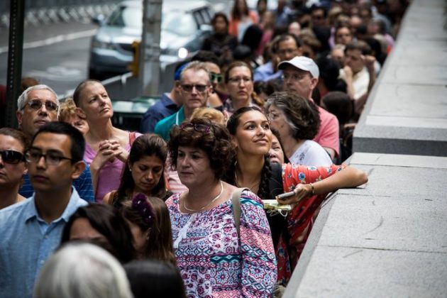 Giáo dân sắp hàng chờ viếng thánh tích ở đường thứ 51è Manhattan ngày chúa nhật 17 tháng 9-2017